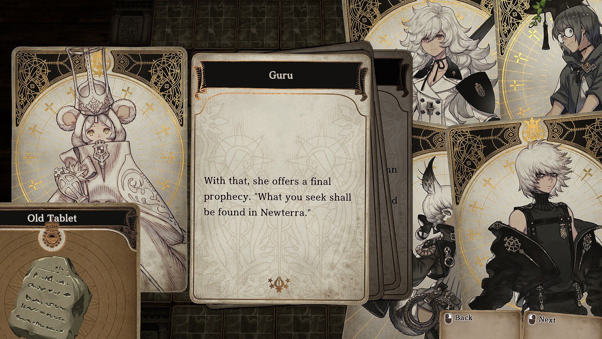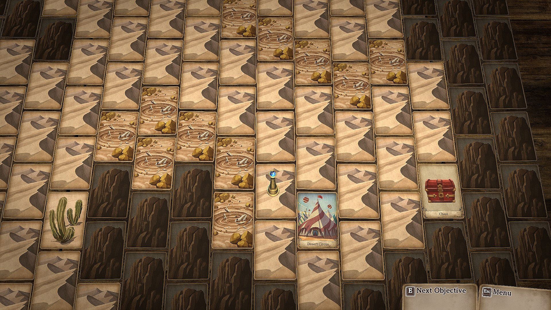 The world this story takes place in, including all the towns, dungeons and fields, is represented entirely by cards, as the player moves avatars to go on their adventure.