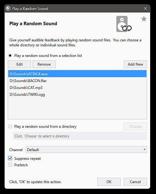 Receive audible confirmation from your commands or fire up a random selection from your favorite tunes. You can pick random sounds from a defined list or even a directory full of .wav, .mp3, .aac, .ogg or .flac files.Not Just Voice Activation - Include Your Hardware