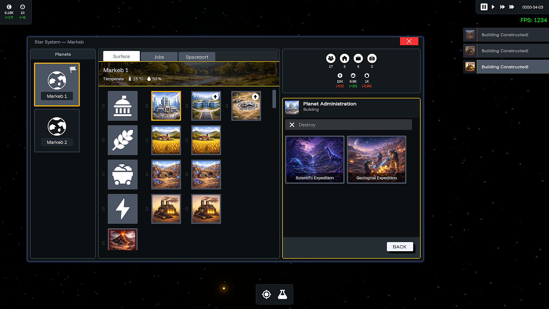 Each star system contains multiple planets with different climates and resources. Through the Star System Management interface, you select individual planets to: