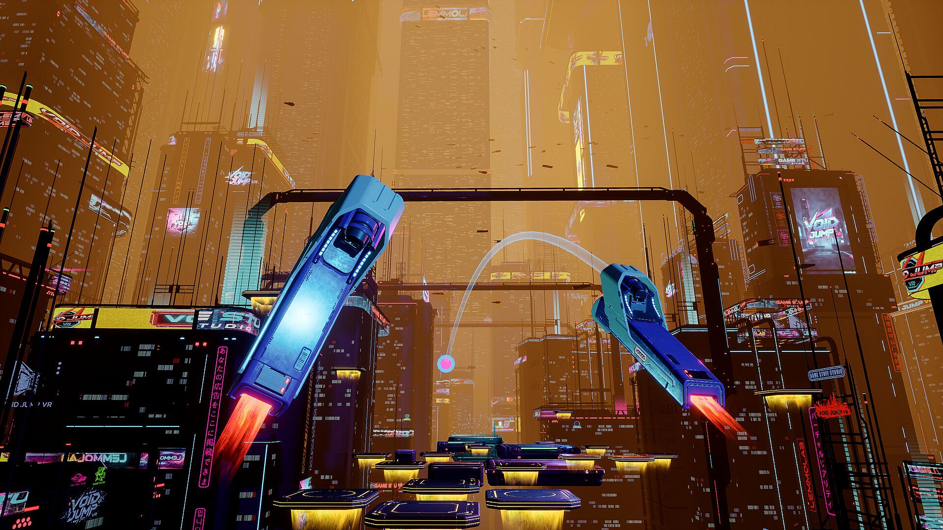 Void Jump VR is a fast-paced, first-person VR platformer set in a neon-lit, dystopian future where every step could be your last. Step onto floating platforms high above the abyss in this VR sci-fi adventure. Test your courage, master precision jumps, and overcome your fear of heights as you race against time to reach the finish. Collect stars, unlock new worlds, and customize your look with unique skins.