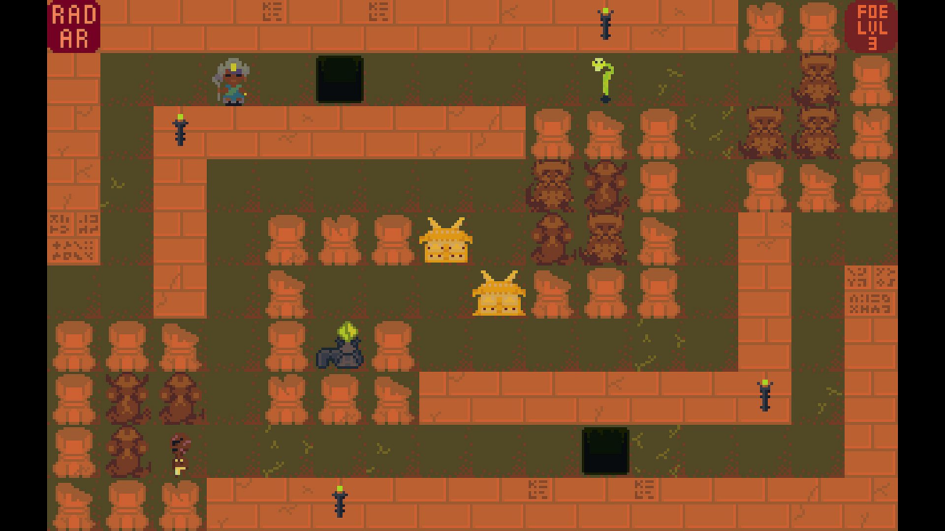 • Explore the intricately designed pyramid. Each chamber is packed with foes, puzzles, traps, and treasures.