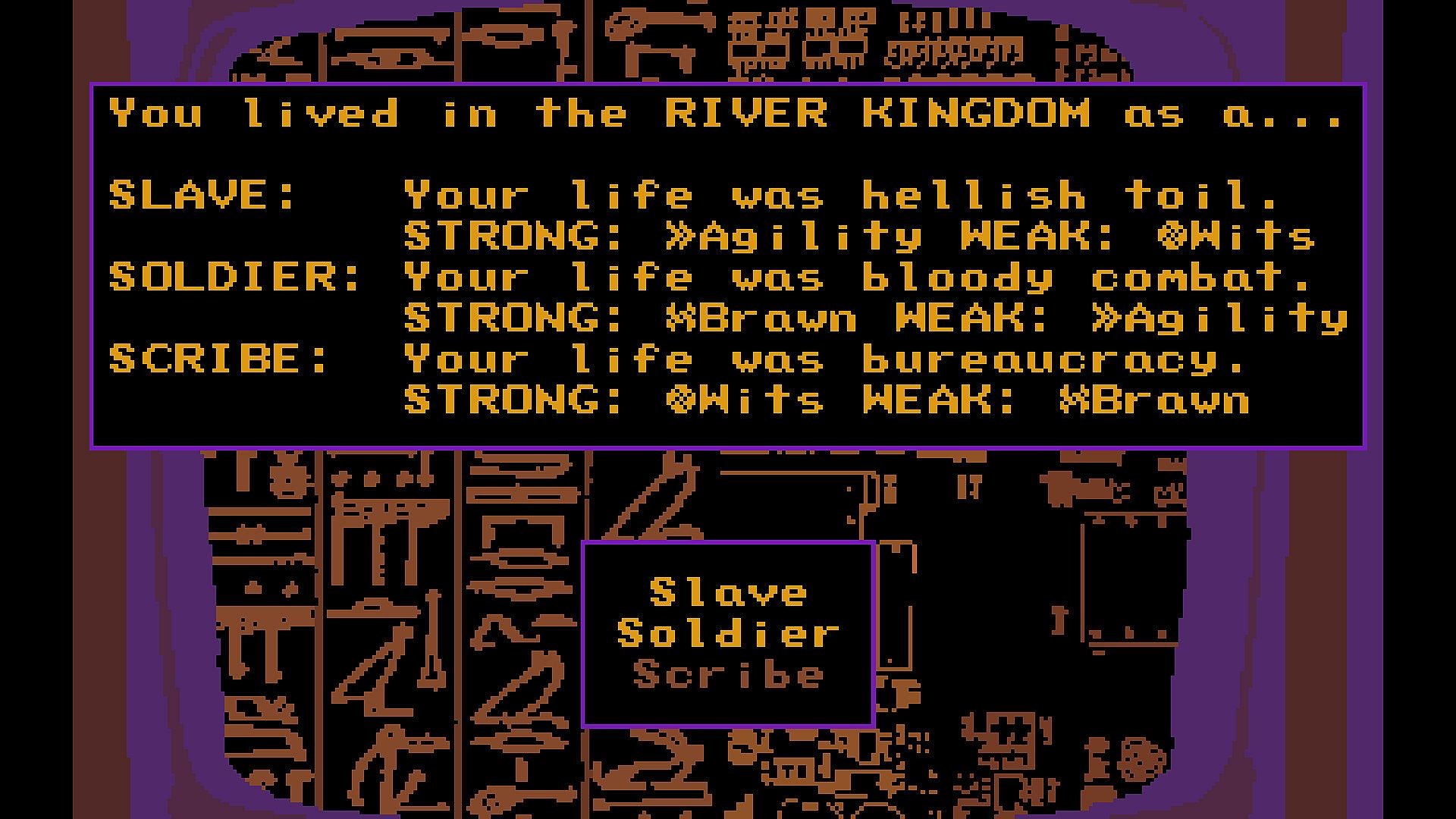 • Choose to be a soldier, slave, or scribe. Overcome challenges with your unique skills.
