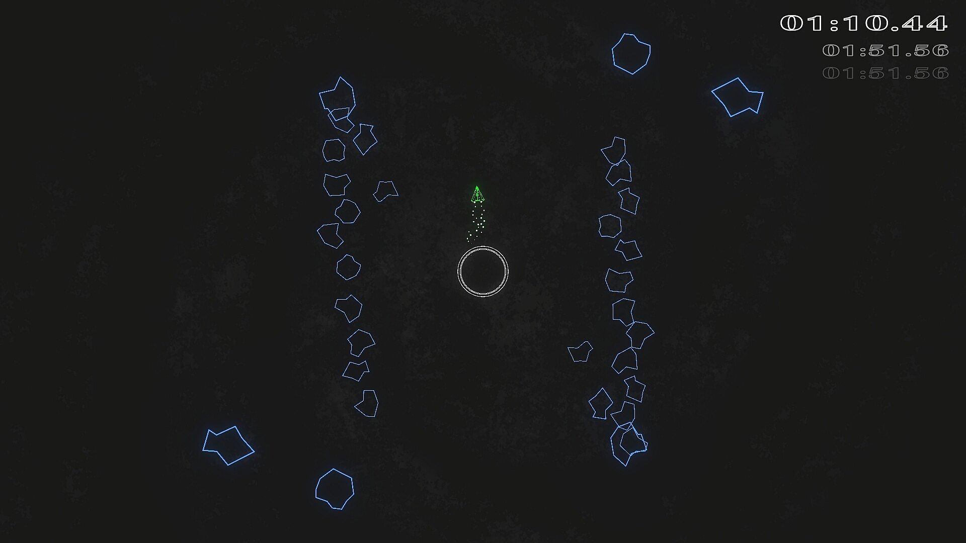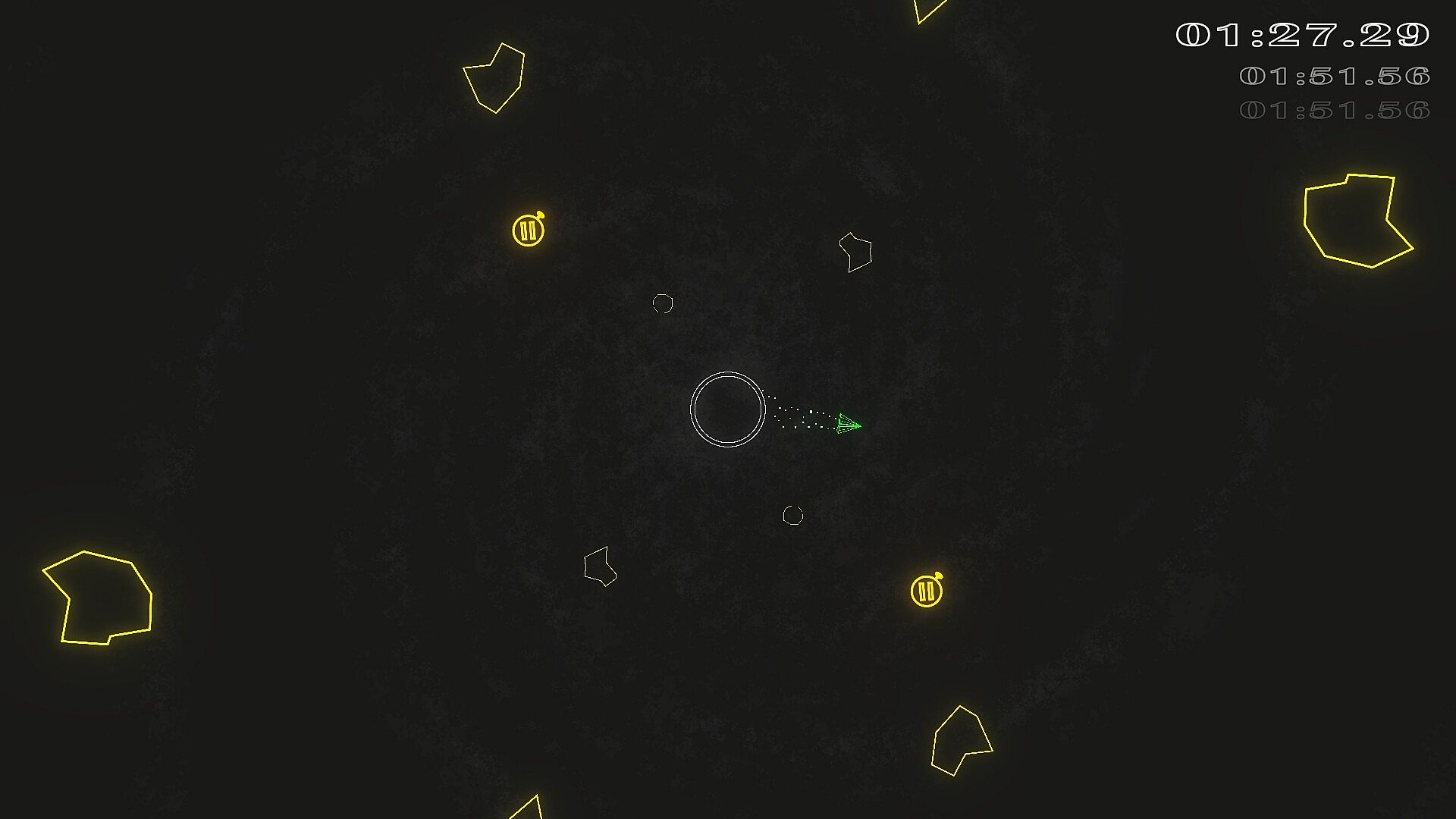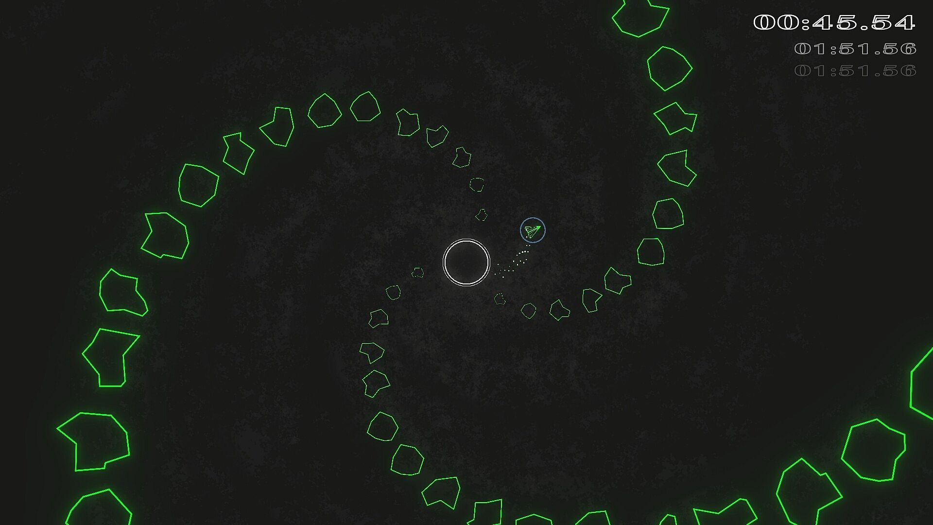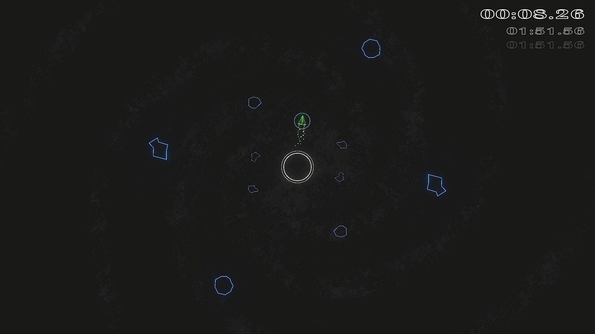 The gameplay is simple but challenging: Evade from the asteroids as long as you can while the singularity prevents you from actually escaping the scene. Collect and use your PowerUps wisely.