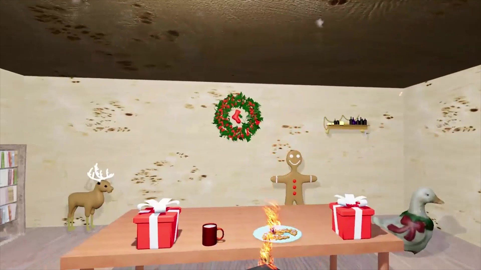 VR Funhouse: Christmas Edition is a VR game (more like a demo) taking place at first in a wintry forest, and then in Grandma's living room. There are multiple types of objects to interact with in each level. It is scaled to work in a 10' x 10' area or larger.