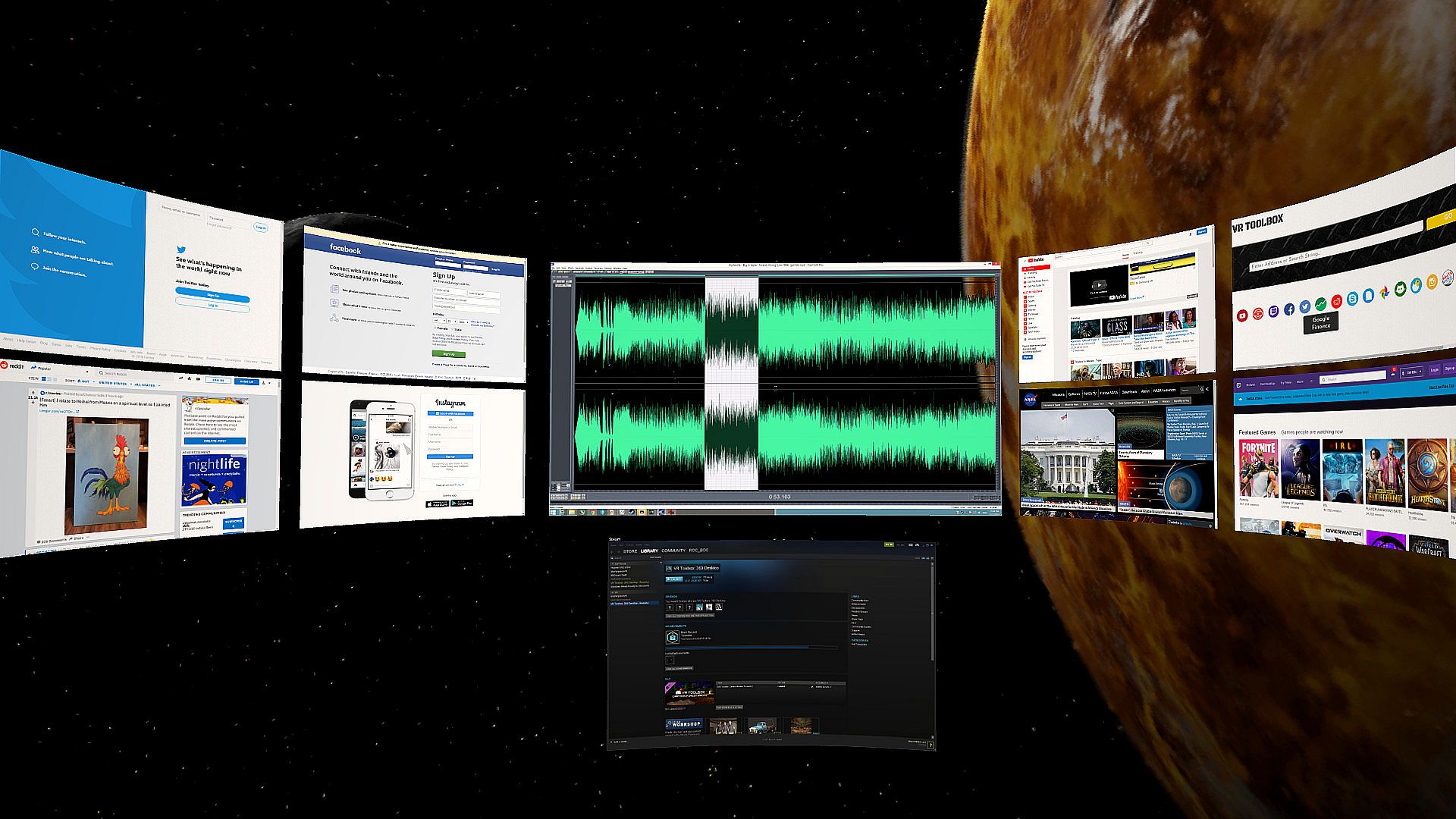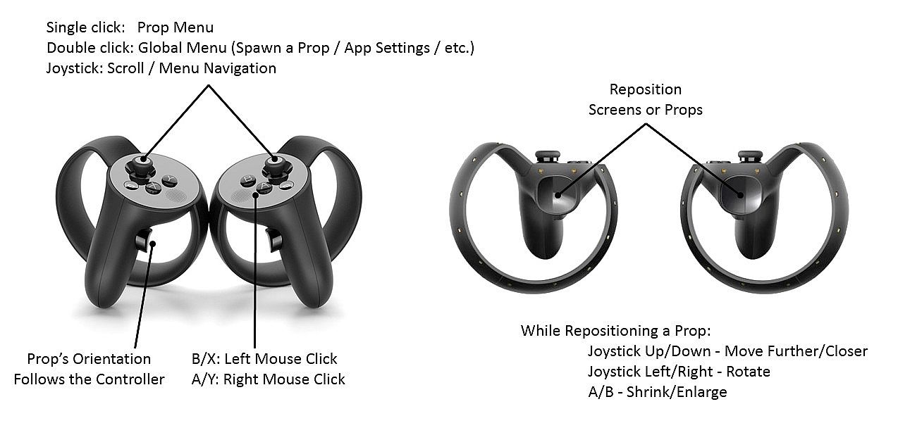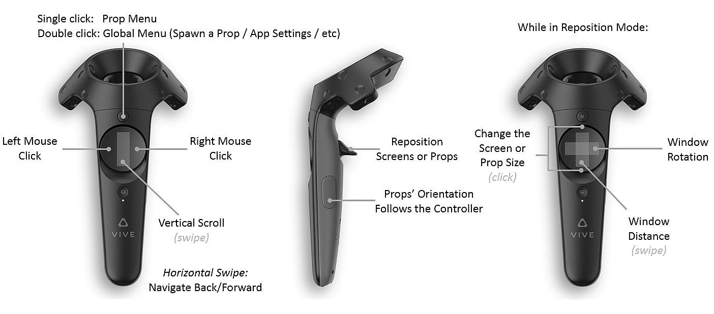 - click and hold: detach the app under the pointer onto its own VR screen (available on Desktop PCs with Win 8.1 / Win 10 only)