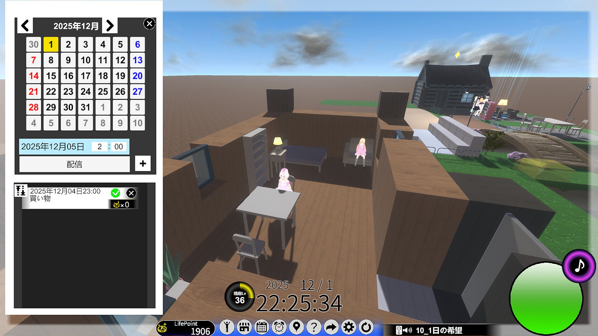 プレイ時間の経過でポイントが貰えて、その間に住人たちが楽しんでくれているかも?
