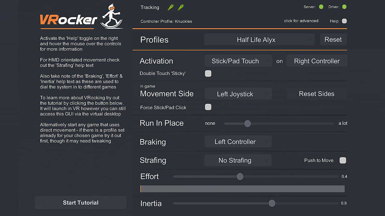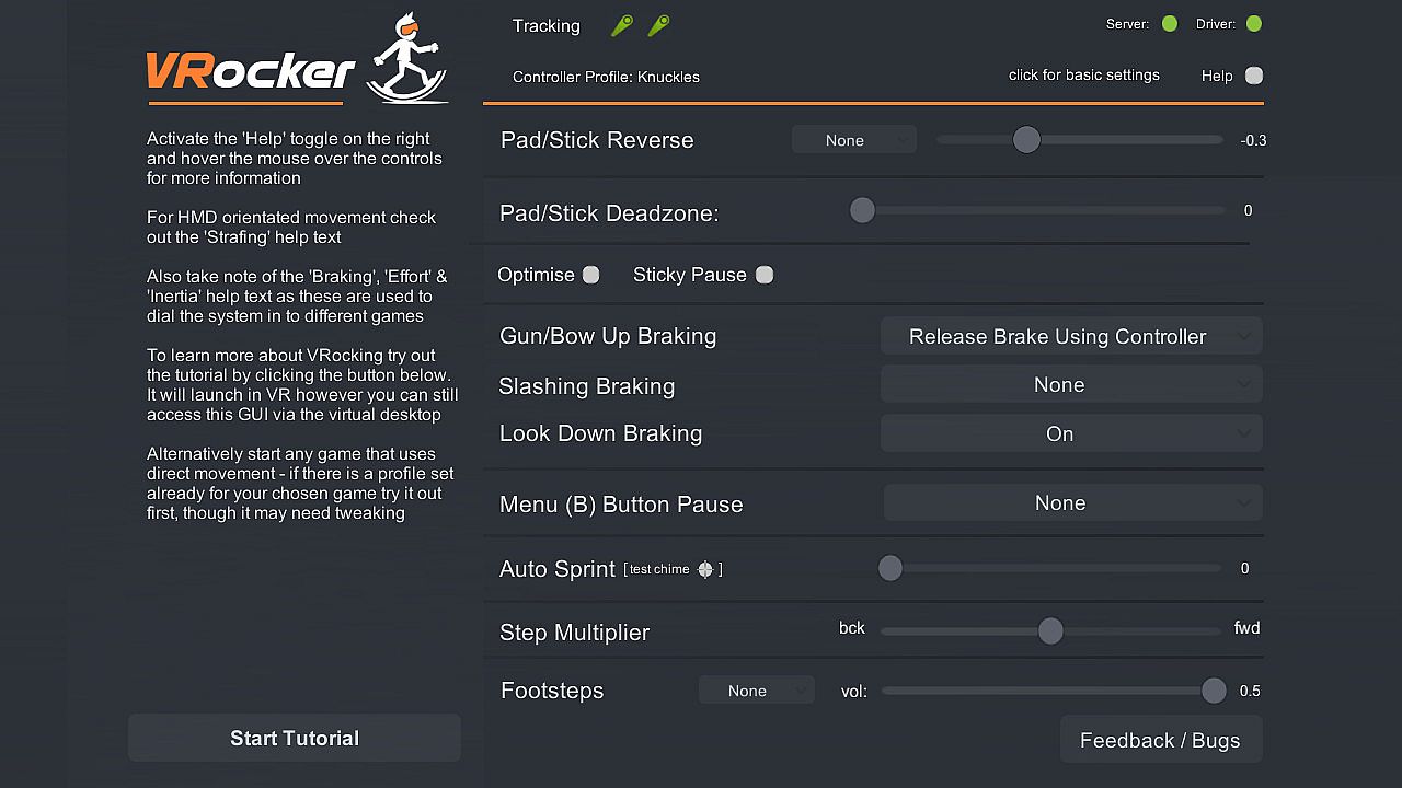 The demo also includes a tutorial without limits so you can try the the various movement techniques yourself, as well as to see how it performs with the games you play. Some VR games might not combine well with VRocker, although it works well with most SteamVR games.