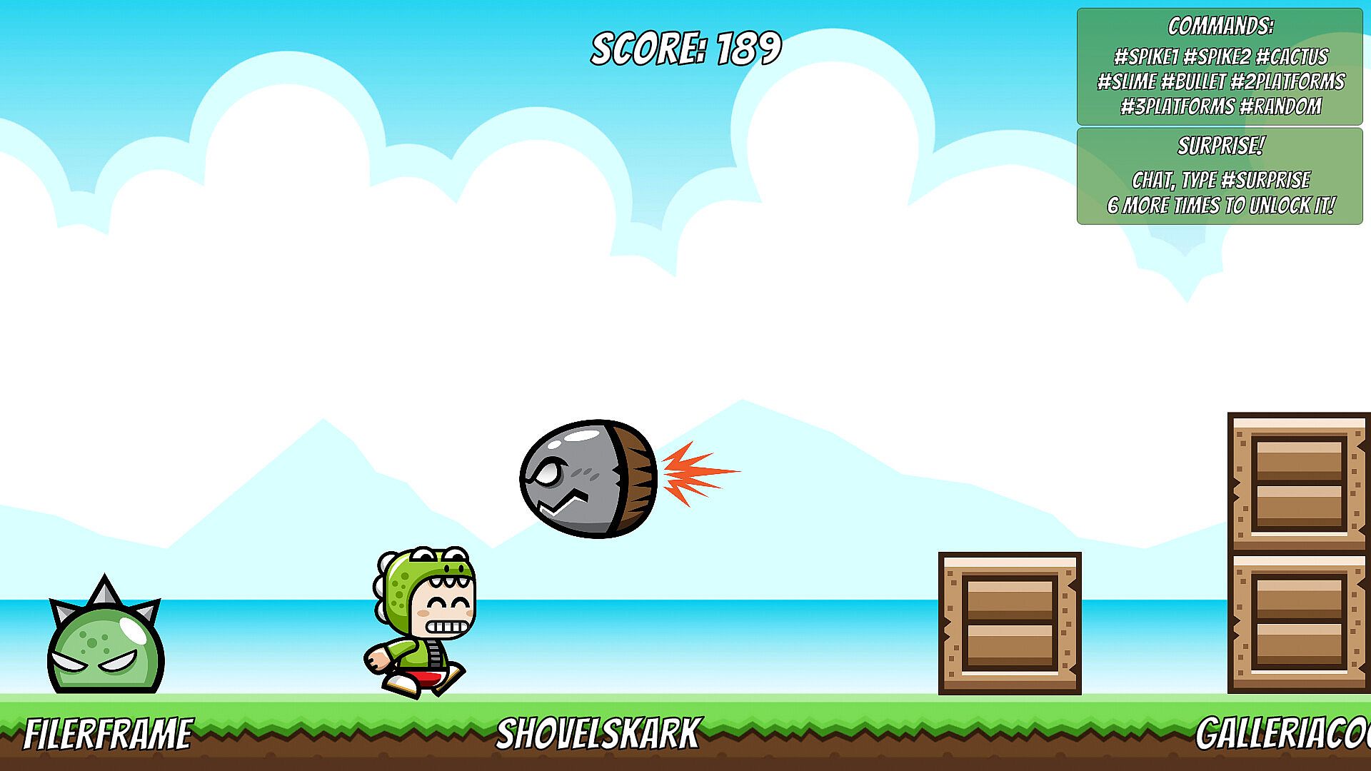 An endless runner where your viewers make all the obstacles - how far can you make it, and who will be the one that stops you? Viewers can also cooperate at certain times to create special surprises for you. These can make the run harder, so keep an eye out for whatever your viewers throw your way!