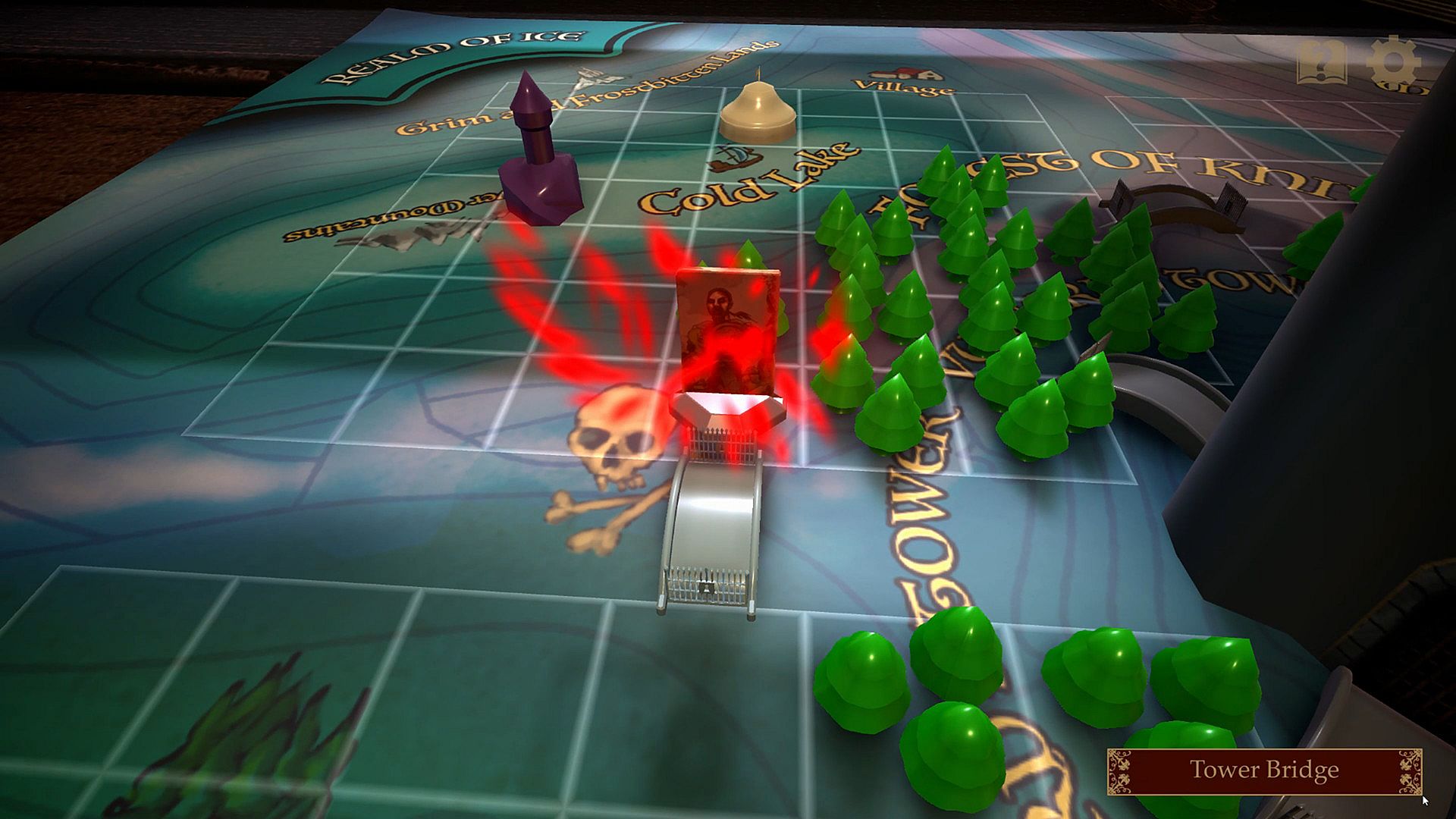 Vulgord's Tower plays like a traditional board game fused with card-based RPG battle mechanics. The goal is to be the first to storm the tower to defeat Vulgord. To do this, you must survive through all four realms, acquire skills, and amass an army large enough to defeat Vulgord.