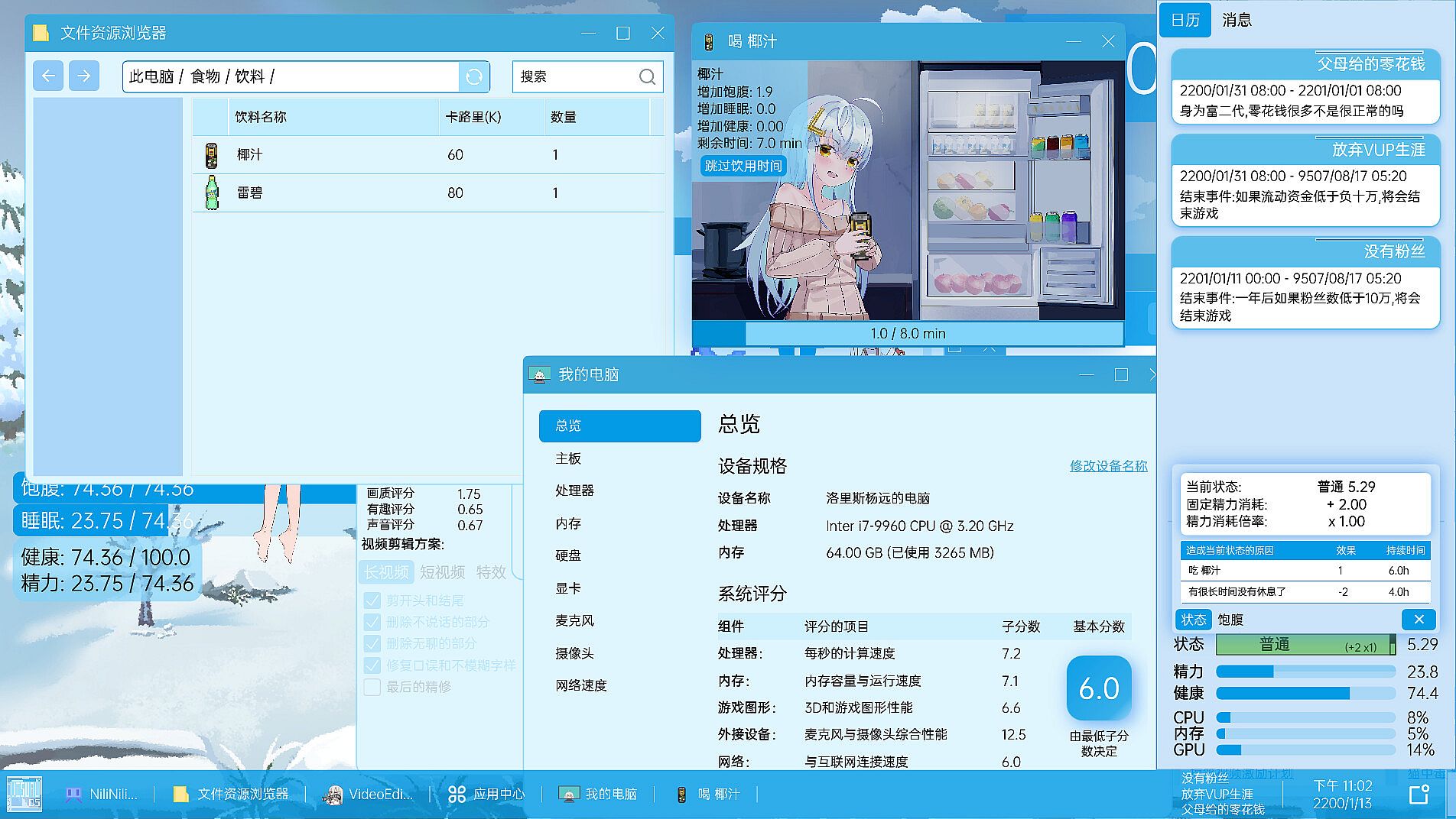 The VUP-Simulator is a game that allows you to experience the career of a virtual anchor. Here you can make videos and get fans' attention, or interact with the audience in live games in the live room and get cheers from the audience (and rewards, etc.)
