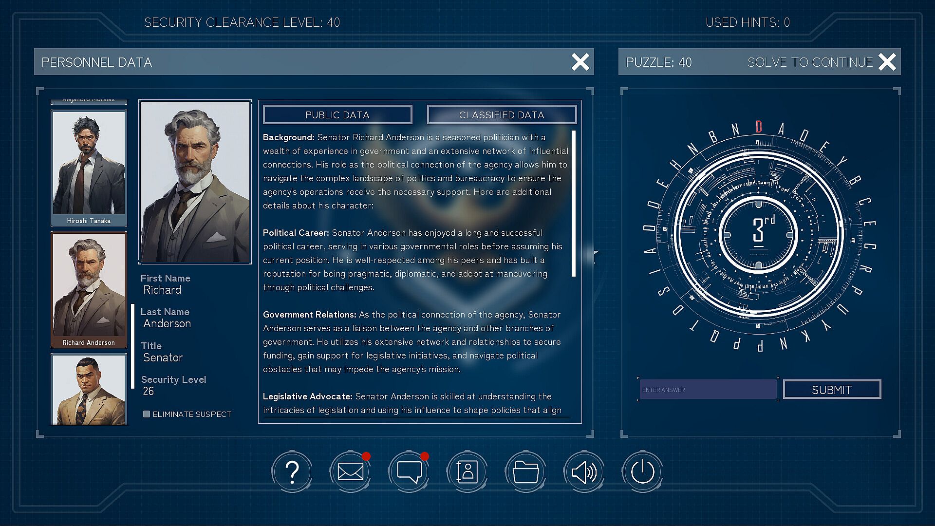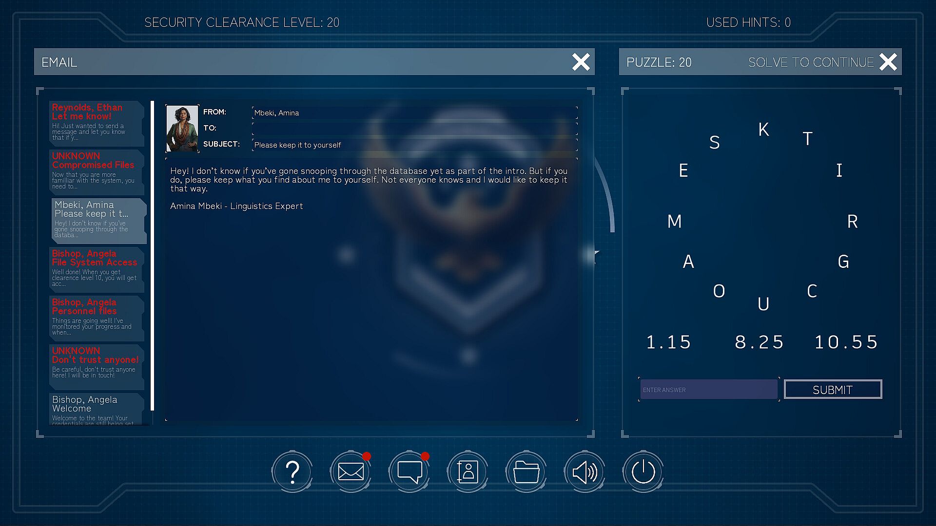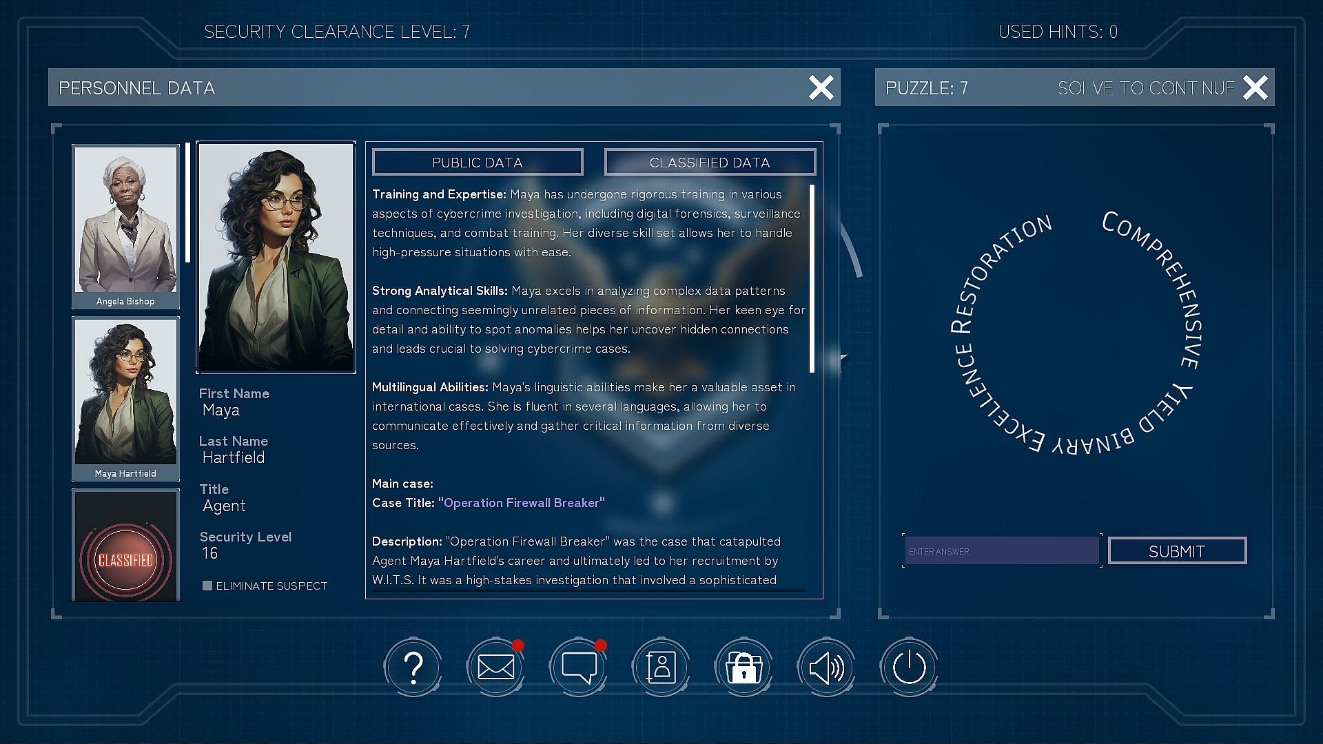 Earn your place with Director Angela Bishop and her team of skilled agents by solving a series of puzzles to prove that you belong with the best of the best. With your wit, analytical mind, and technological prowess, navigate through a series of complex clues, crack intricate puzzles, and unravel the secrets hidden in the digital realm.