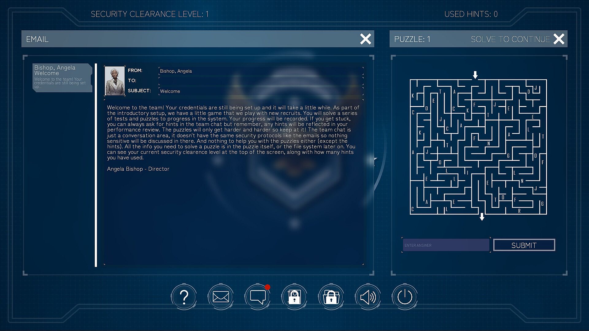 W.I.T.S: INITIATION is a logic puzzle game where you have to some puzzles to progress further in the system. As you learn more about the other agents and the agency, you will uncover something troubling at W.I.T.S, it looks like one or more of the agents aren't quite what we think. Can you solve all the puzzles and get to the bottom of the mystery?