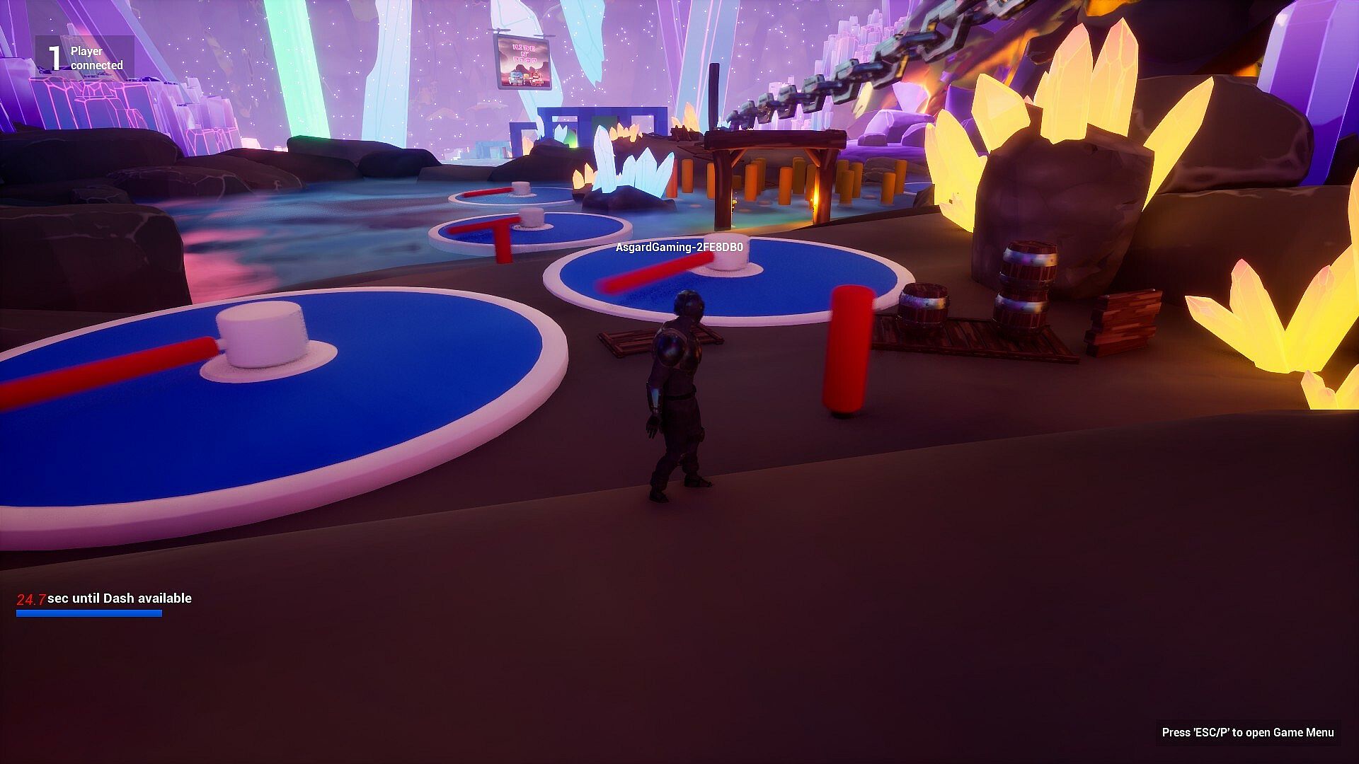 Players start each race on a starting platform suspended in the air. From there, they must run, jump, and navigate through a series of ninja-inspired obstacles, such as climbing walls, moving platforms, rotating blades, swinging pillars, and much more.