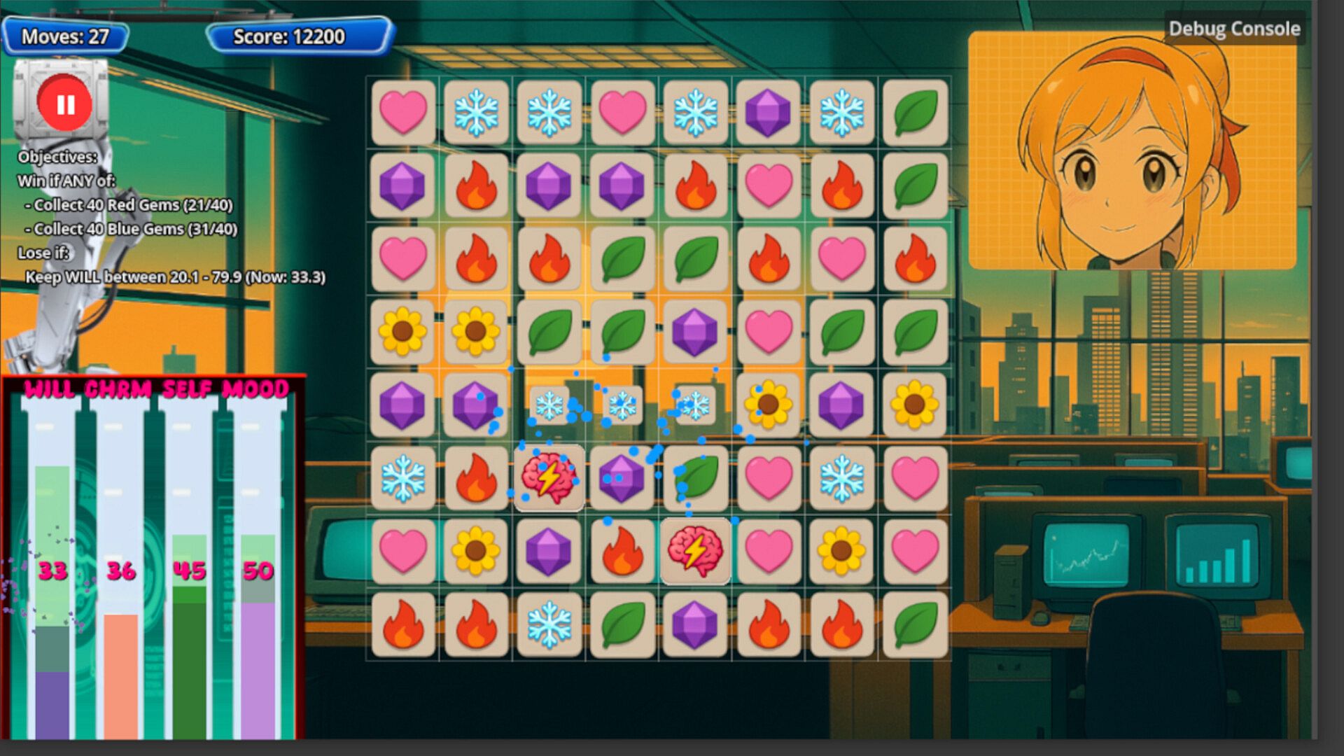 Waifu Pilled is a satirical match-3 dating sim fused with a visual novel β set in a glitchy vaporwave nightmare where love is transactional and self-worth is gamified.