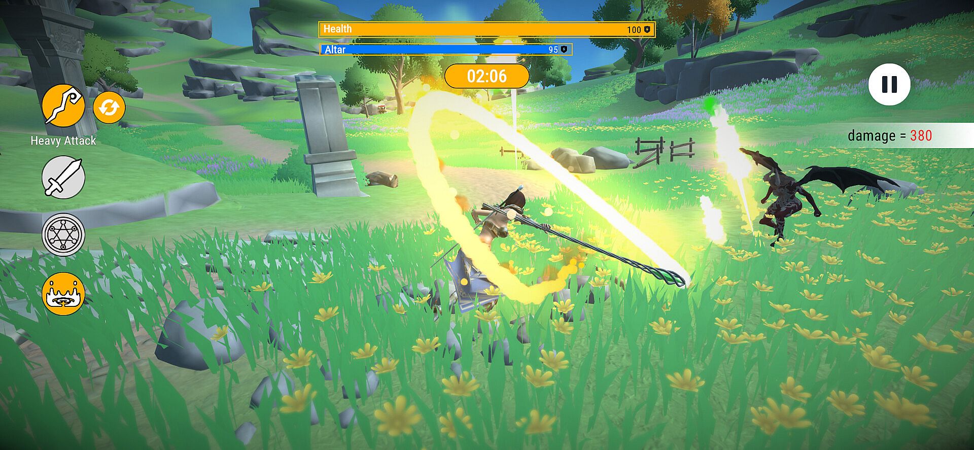 You can play in 4 different combat styles with weapons such as staff, sword and magic. Your main objective is to defend the altar and yourself until the time runs out.