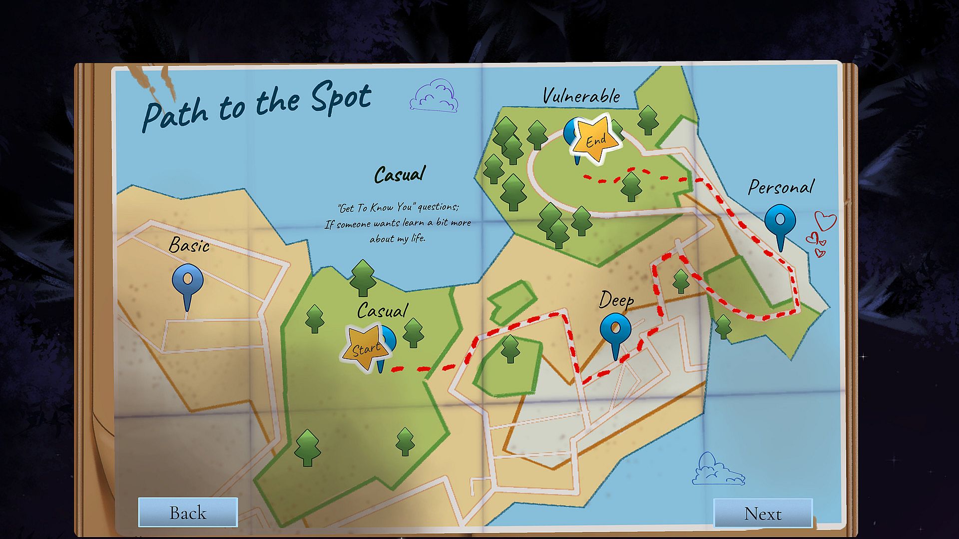 How do you want to get to know your friends? Walk to the Woods has 12 different base topics of various levels of intensity ranging from casual questions you could ask any coworker to vulnerable questions that may cause some tears. Are you on a first date? Trying to learn more about your family? Want to know more about random parts of someone's past? Not only are there 1200+ questions in the game, but also 40+ special sets that are specifically about certain topics and groups of people! Some examples of special sets include First Date, Couples, Pride, Out and Proud, Generations, Bias, Programming, Politics (non-US centric!), Movies, Music, Video Games, Tabletop and much more!