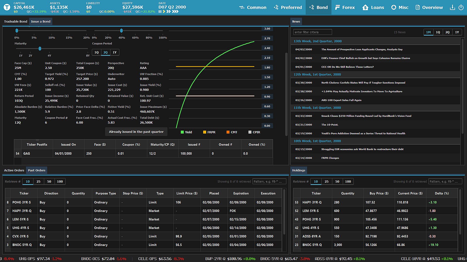 Apart from the vanilla trading of instruments, currencies and derivatives, your company is fully capable trading on margin, offering loans to ordinary customers and issuing fixed-income securities on its own. These ways of raising capital give you the ability to operate with creditors money, thus maximizing the profits, but everything comes at a price and the interest responsibilities might one day present a significant burden, if not issued with care.