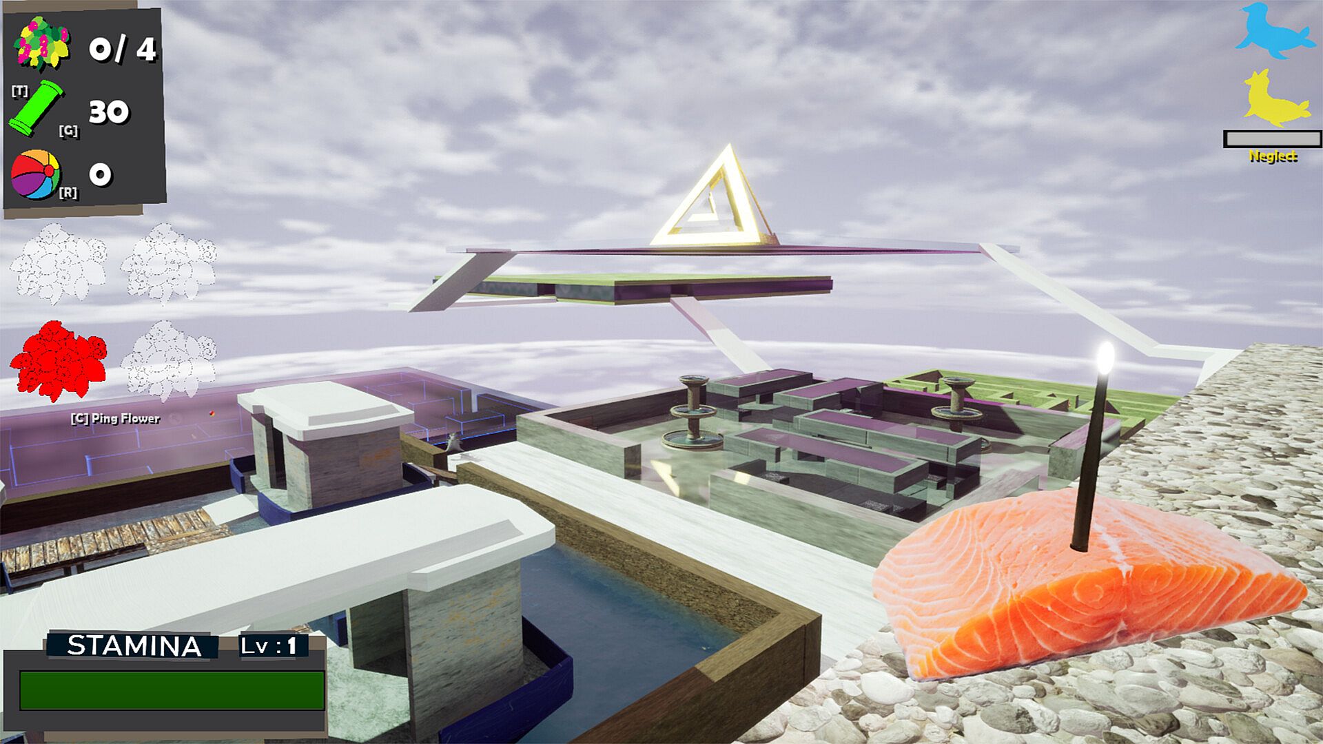 • The Salmon Radar item will show you your proximity to each of the 4 flowers you must collect when in range.