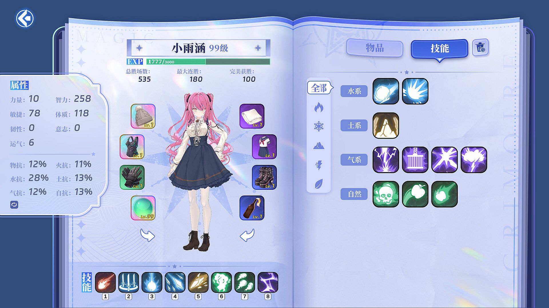 *After finishing your daily study plan, you may continue learning and reviewing through additional features, or choose to work part-time or fight monsters in the virtual world to earn extra currency and experience. Whether “working” or “monster hunting,” both are vocabulary-based games designed for review. While playing, you strengthen your mastery of previously learned words. With the virtual currency you earn, you can purchase outfits, stockings, combat equipment, houses, and gifts for your assistants.