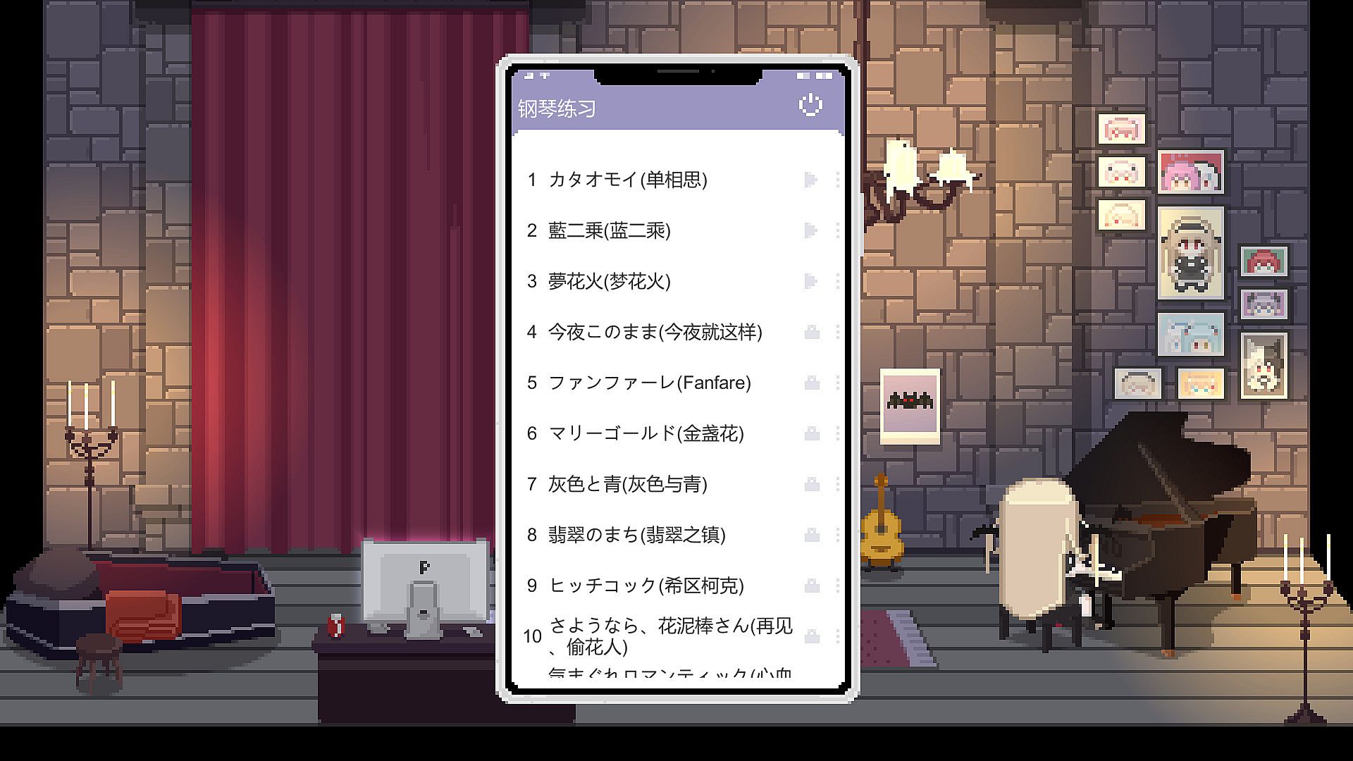 使用音乐点来解锁更多的歌曲!在房间里可以鉴赏所有乐器弹唱的完整版,还有四种播放模式可供选择:单曲播放,单曲循环,列表循环和随机循环,一起悠闲地听歌吧~