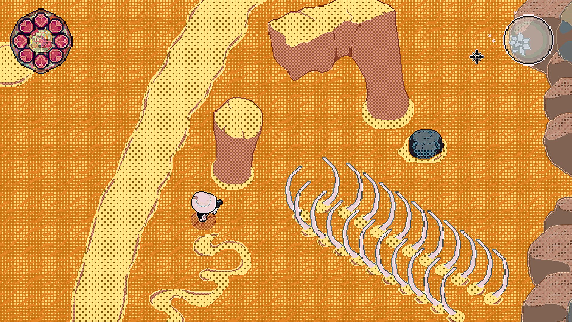 Mount Hollow is a bit more linear and action packed, contrasting the more open world and exploration approach of Wänder OutWorld. As it progresses in rooms and levels. Its also different in style, its pixel art and played in her fictional portable console. But it has many of the same features as the other one and plays mostly the same, gameplay wise.