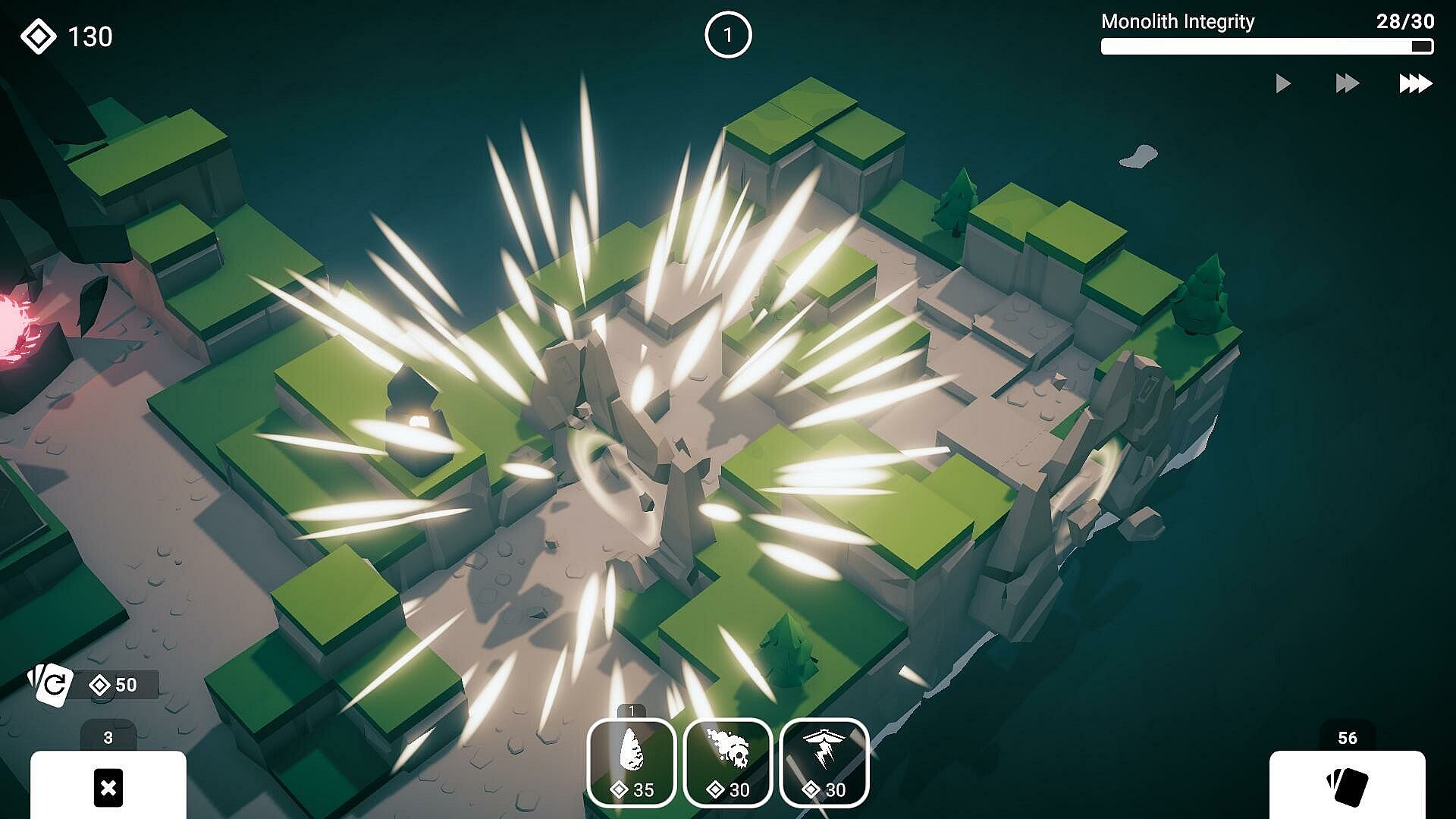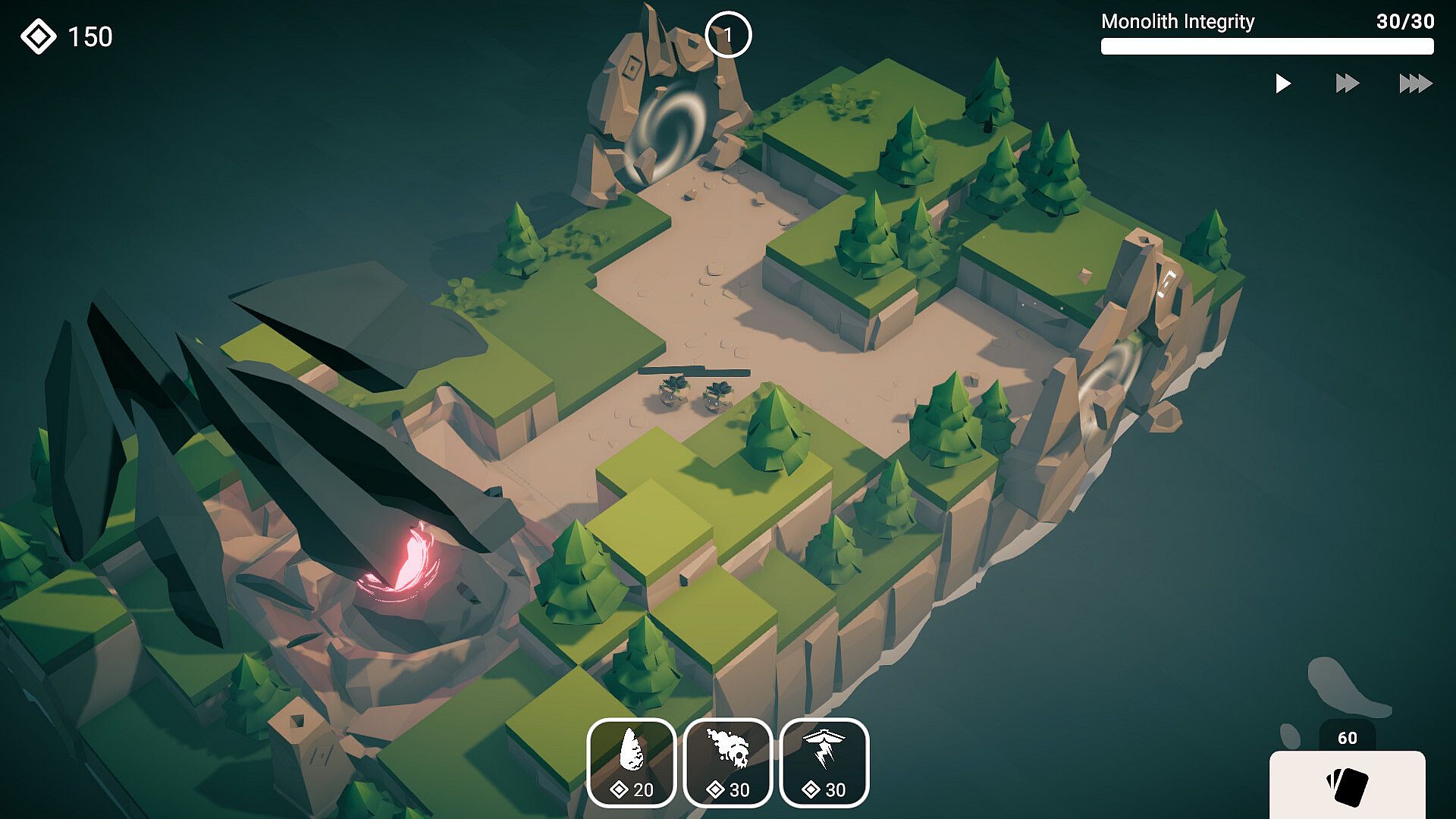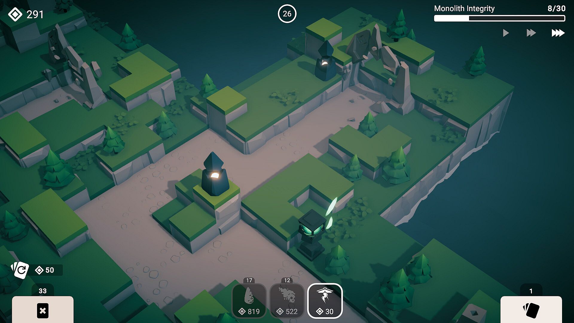 Wandering Monolith is a Roguelike, Tower Defense game with Deckbuilding elements.
