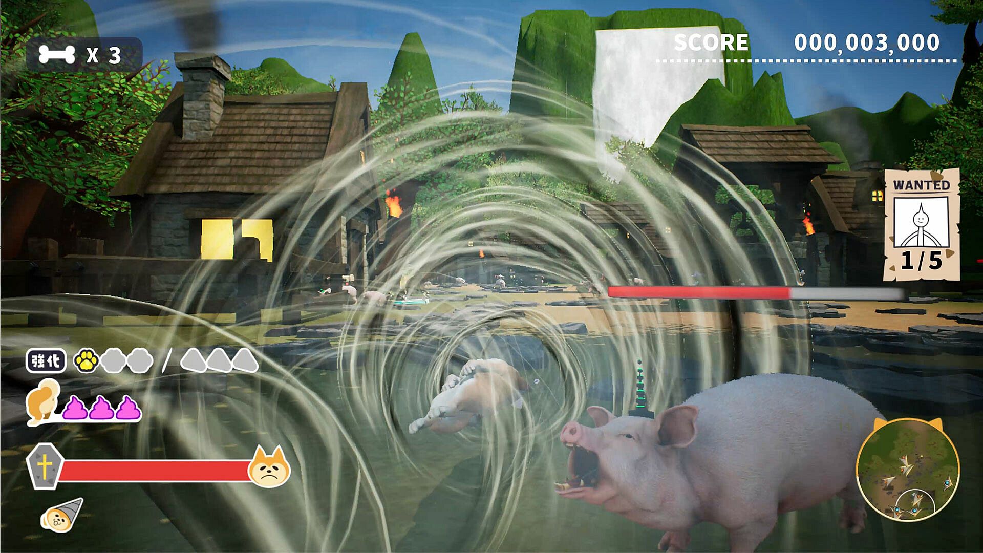 At the end of the area, a boss character, a giant animal, awaits and attacks the player.