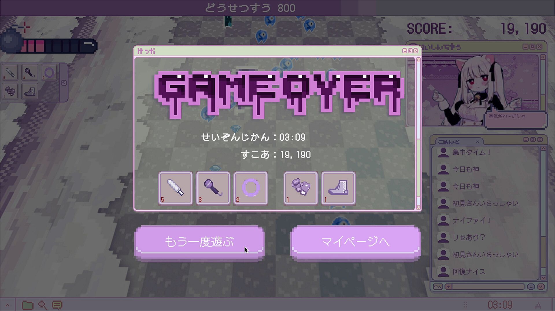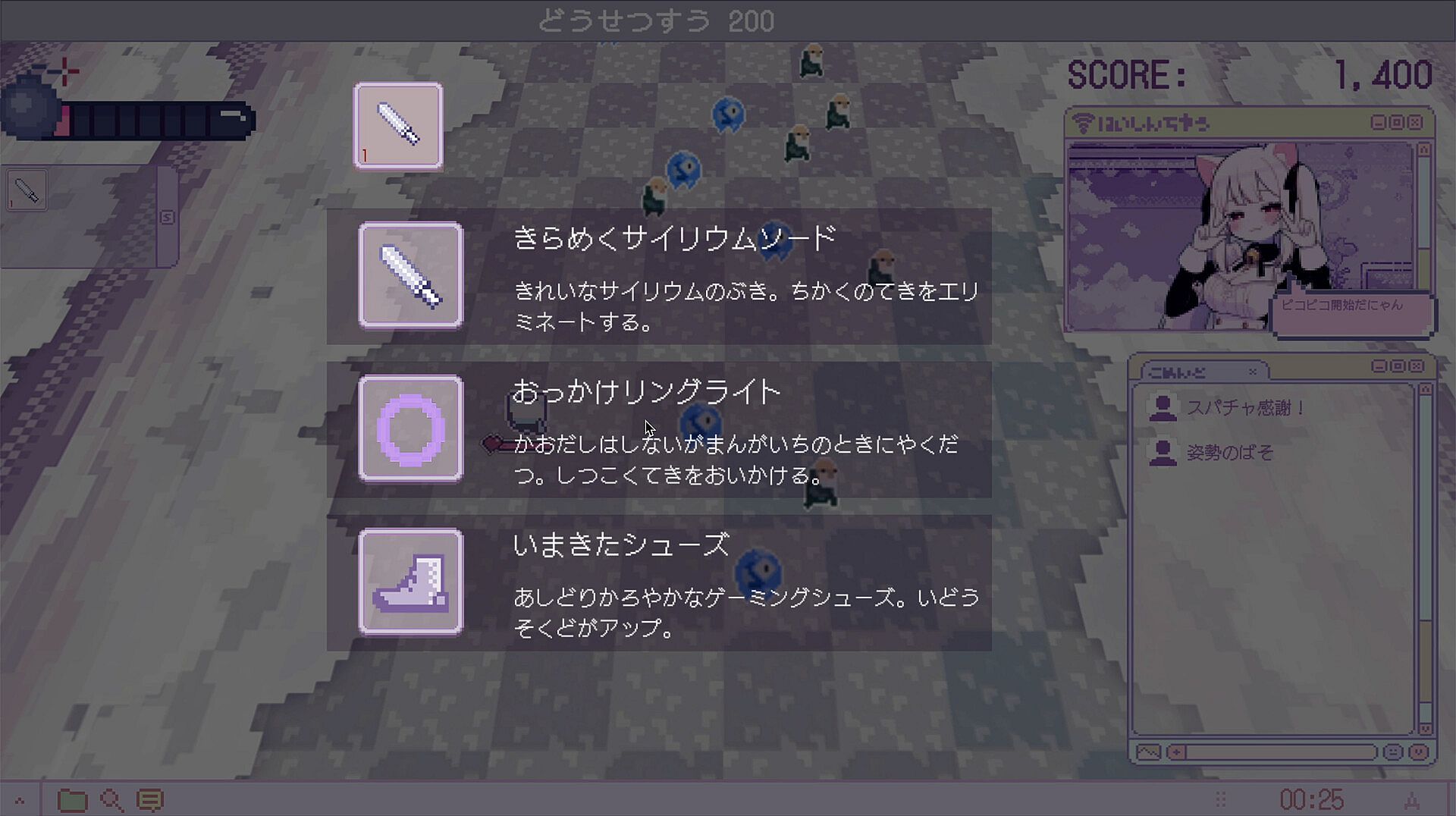 害悪リスナーやアンチが敵として襲いかかる中、画面上を逃げ回りつつスキルで撃破し、ストレス値を正常にせよ!