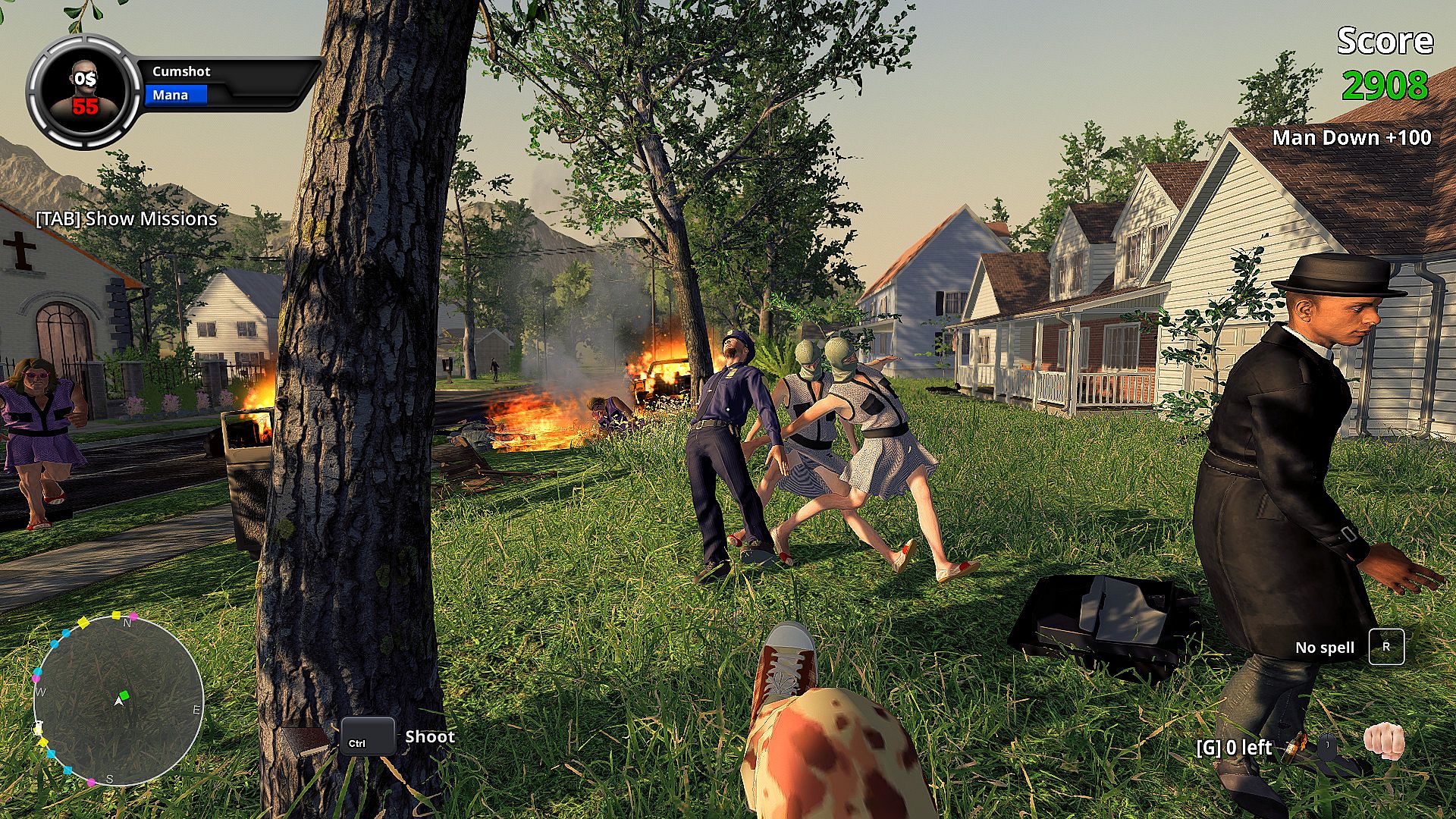 You play as Winston Gay, a man whose house was taken away by the corrupt government after being called out for wanking too loud by his neighbours. Now, Winston is on a mission to make everyone in the town pay a price for taking away his home.