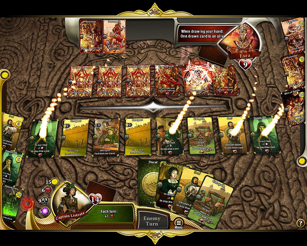WAR OF OMENS features a unique deck building mechanic that enables you to do a multitude of actions per turn. Engage in fast-paced combat with other players. Collect, win, and craft cards to assemble a powerful deck to prove your dominion over your opponents.