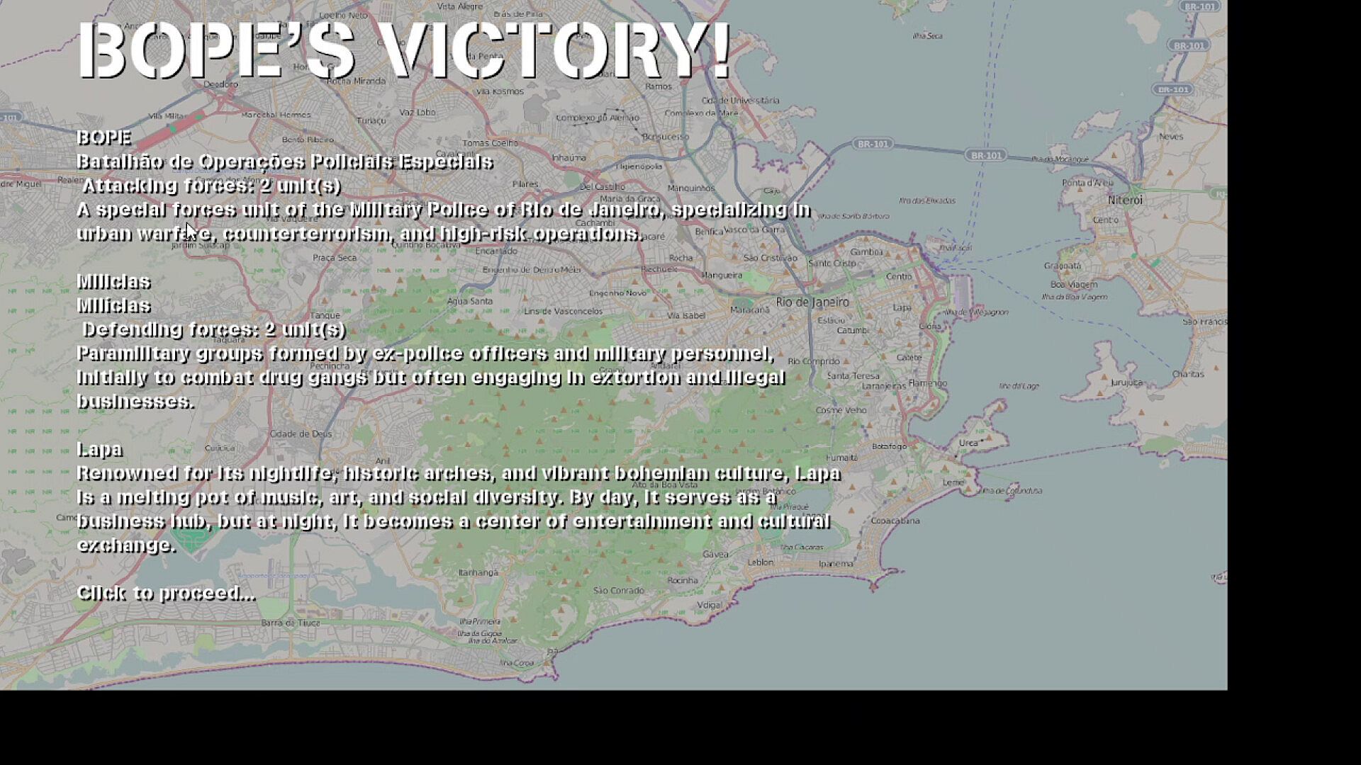 The streets of Rio de Janeiro are in chaos. Crime lords rule the favelas, and lawlessness spreads like wildfire. It’s time to take back the city! In "War on Crime: Elite Squad," you command an elite task force sent to pacify all 20 crime-infested territories—by any means necessary.