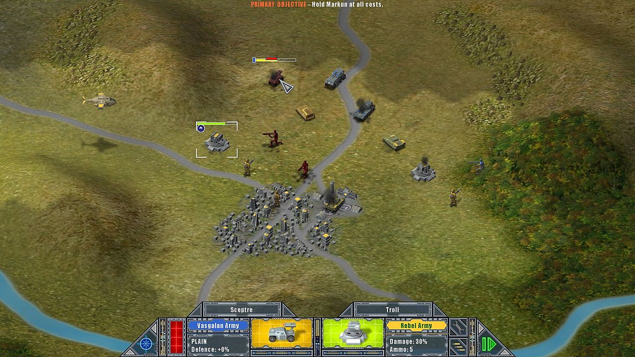 The people of Folvos are about to lose their freedom. Their tiny planet is home an extraordinary new raw material, but they themselves don’t even know about it. The great Vasgalan Empire discovered it and is staking their claim. Clouds of war are shaping over the endless Folvos desert. You cannot wait any longer. Choose your side and take command! Lead your soldiers, tanks and aircraft to victory through Folvos varying landscapes across dozens of battles.