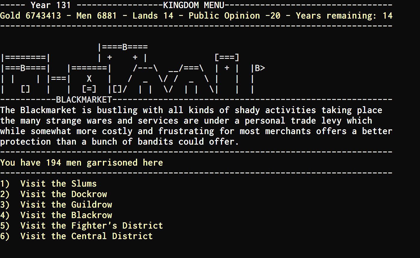Warsim's core focus is allowing the player to do whatever they want, with the relevant consequences of course (and perhaps we've gone too far in that aspect). Do you want to destroy the bank because you owe them a 1 gold loan? Sure! Want to imprison every musician who visits your court to disuade bards from visiting you? Done! Want to gamble and waste away all of your gold betting on scorpion fighting and dice games? Yes, yes and yes! (If you want to learn more read below)