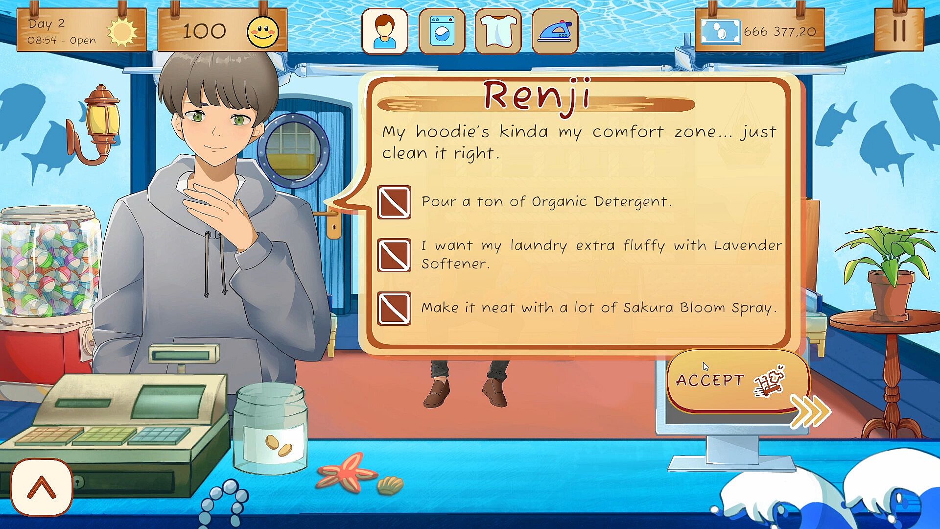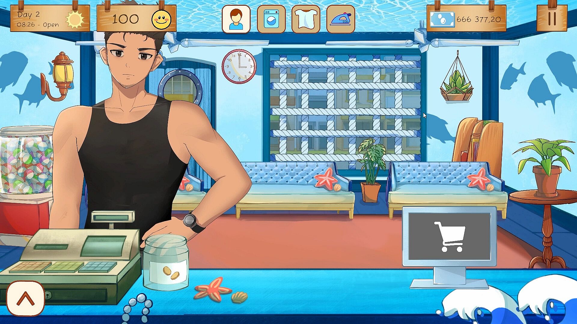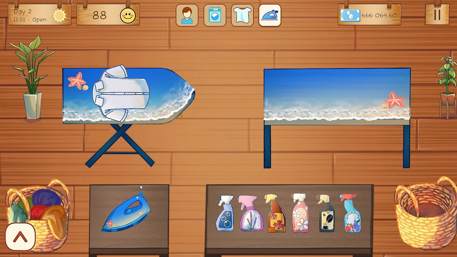 Transform your humble laundry shop into a welcoming space full of personality. Mix and match interior styles, from rustic wood to ocean breeze or sunflower shine, to create your perfect cozy corner. Upgrade your washers, dryers, and irons to improve efficiency, or add small decorative touches that make customers smile. Every detail you choose adds warmth to your little world.