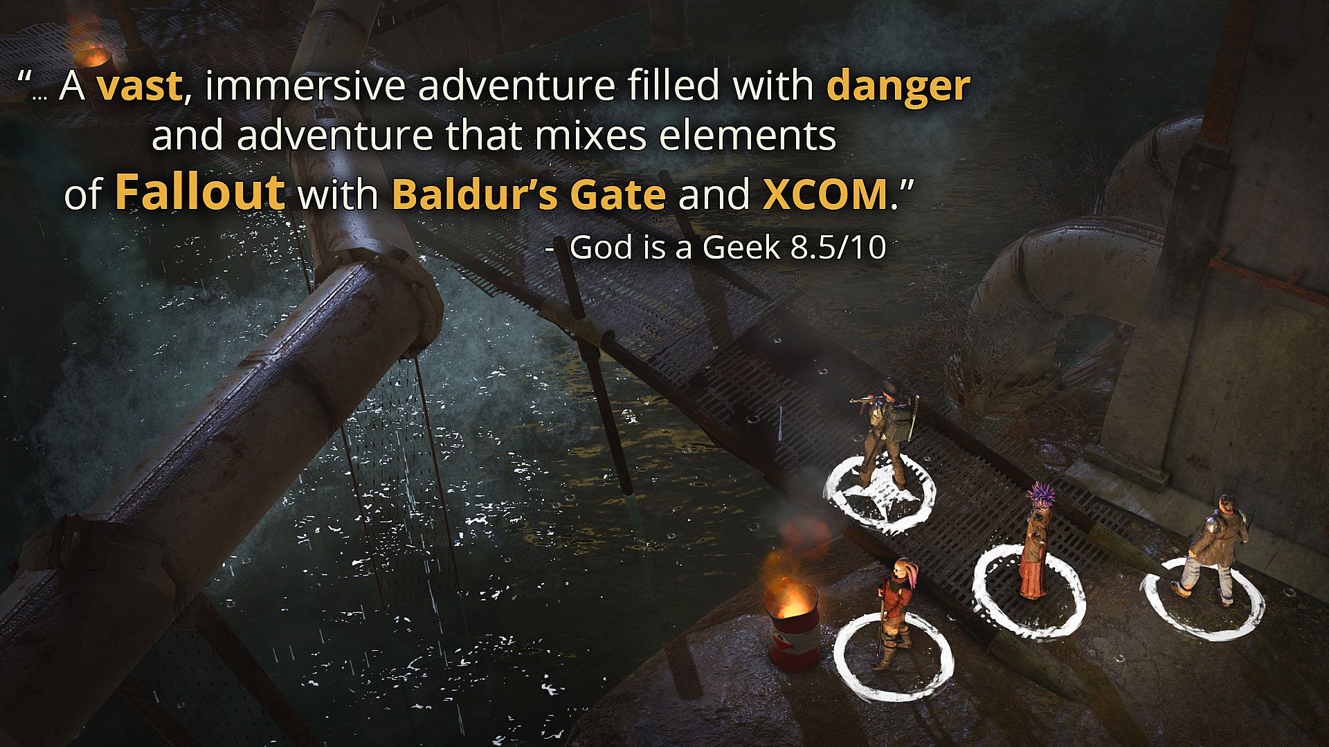• Decision Making... with Consequences: With both short and long term reactivity, your choices ripple outwards, changing the game's events and forever altering the lives of those in the wasteland.