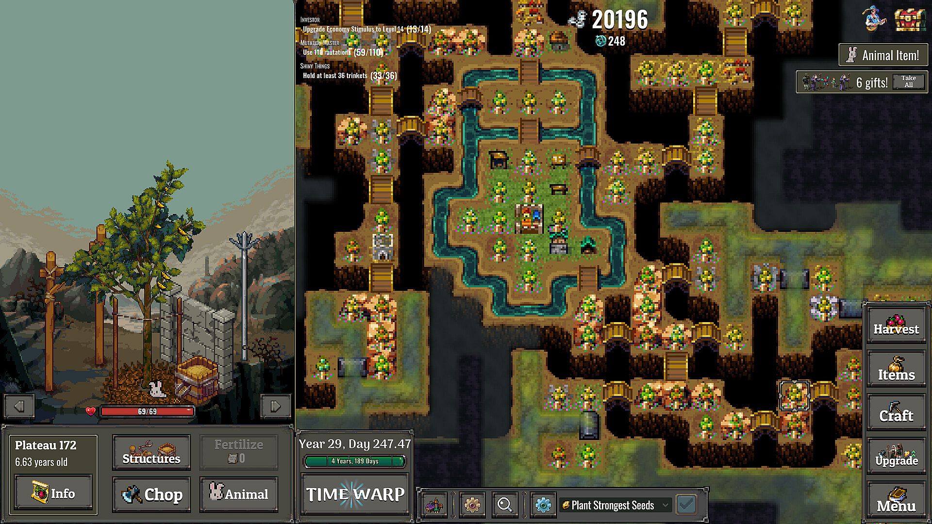 Select fruit with the ideal properties to plant more trees and expand your orchard. Explore, scavenge, craft, build, trade with and receive gifts from townsfolk, research powerful abilities, and use rare golden seeds for permanent upgrades!