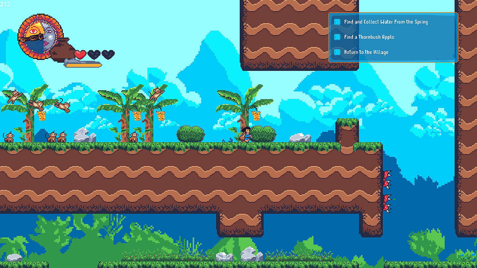 Fill up your trusty pot and return to the village before the sun sets. Be careful though, you're not as agile as you were before filling up.