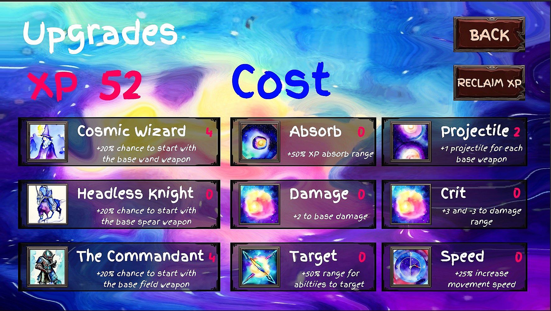 Evolve base weapons with meaningful choices that change your run's playstyle. After each run buy upgrades and change your starting weapon. Each time you fully complete a Chapter, your character unlocks new weapons, permanent stacking damage, and other stat bonuses.