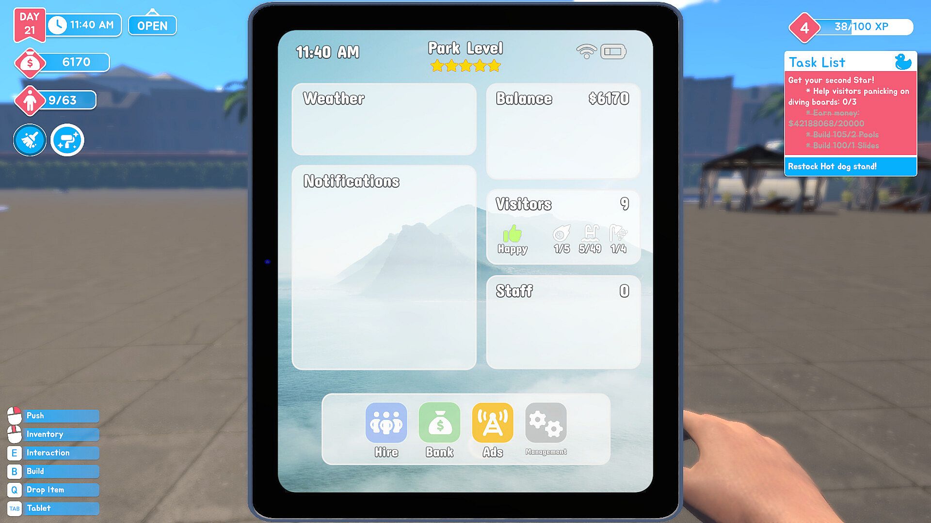 Everything you do affects your park’s overall rating from how clean it is, to how fun your slides are, to the quality of your food and amenities. The happier your guests are, the better your rating. Keep them satisfied and they’ll stay longer, spend more, and want to come back.