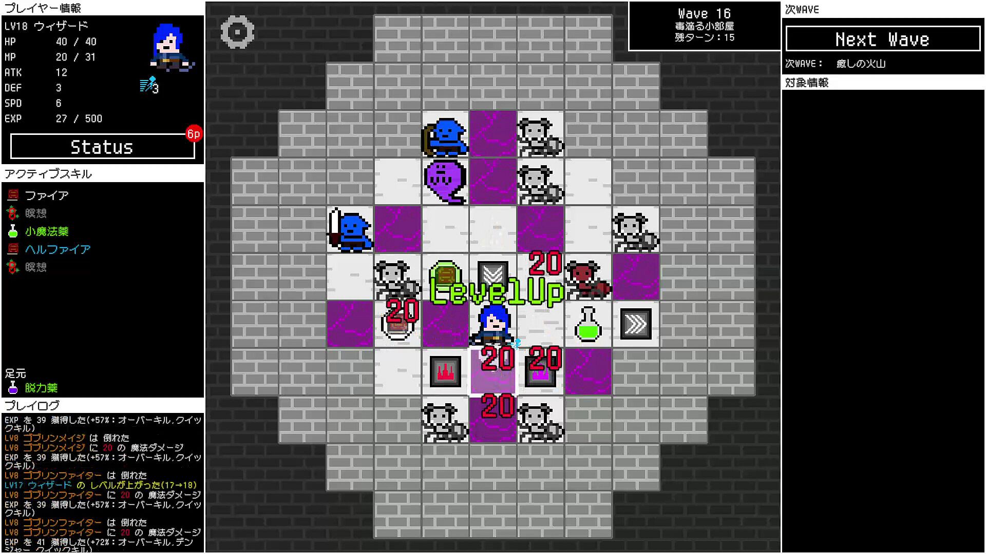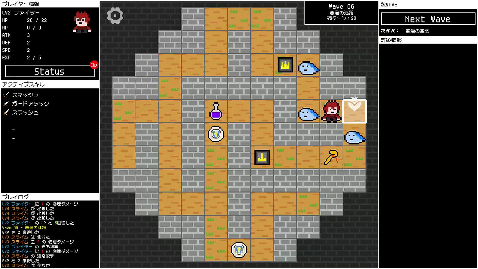 Wave Danjon is a roguelike RPG in which the player is forced to navigate a map that switches at regular intervals.