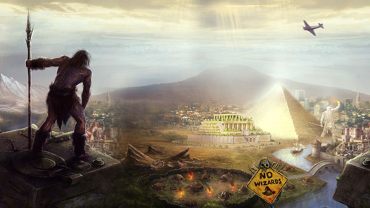 You start from a Stone Age little village with a bunch of tribesmen. Development follows the Scientific tree that is already known to some people. It contains almost 250 sciences and technologies.