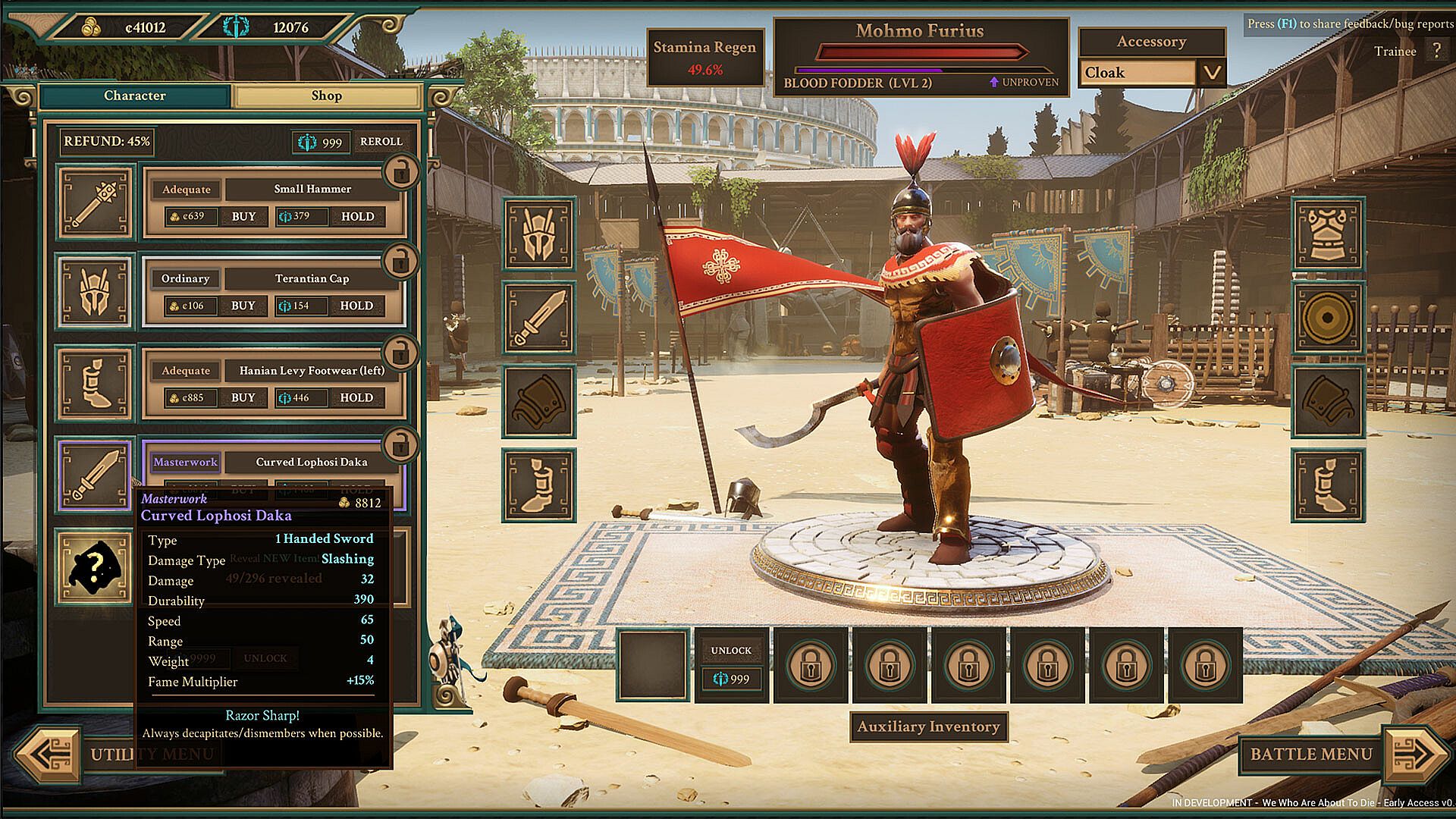 This game's combat will take practice: at first you will find it hard to even hit anything properly. To win and master combat you will have to slow down and pay attention, pressing random buttons in a panic will only send your gladiator to an even earlier grave. You will learn how to move, how to use momentum to hit HARD, how to hit targeted weak spots and eventually, you will make up your own moves and fight in your own style.