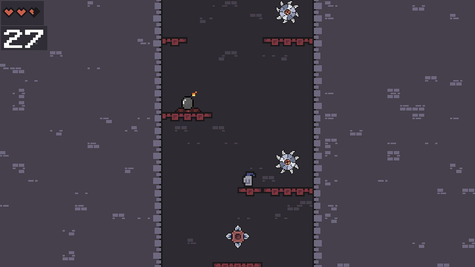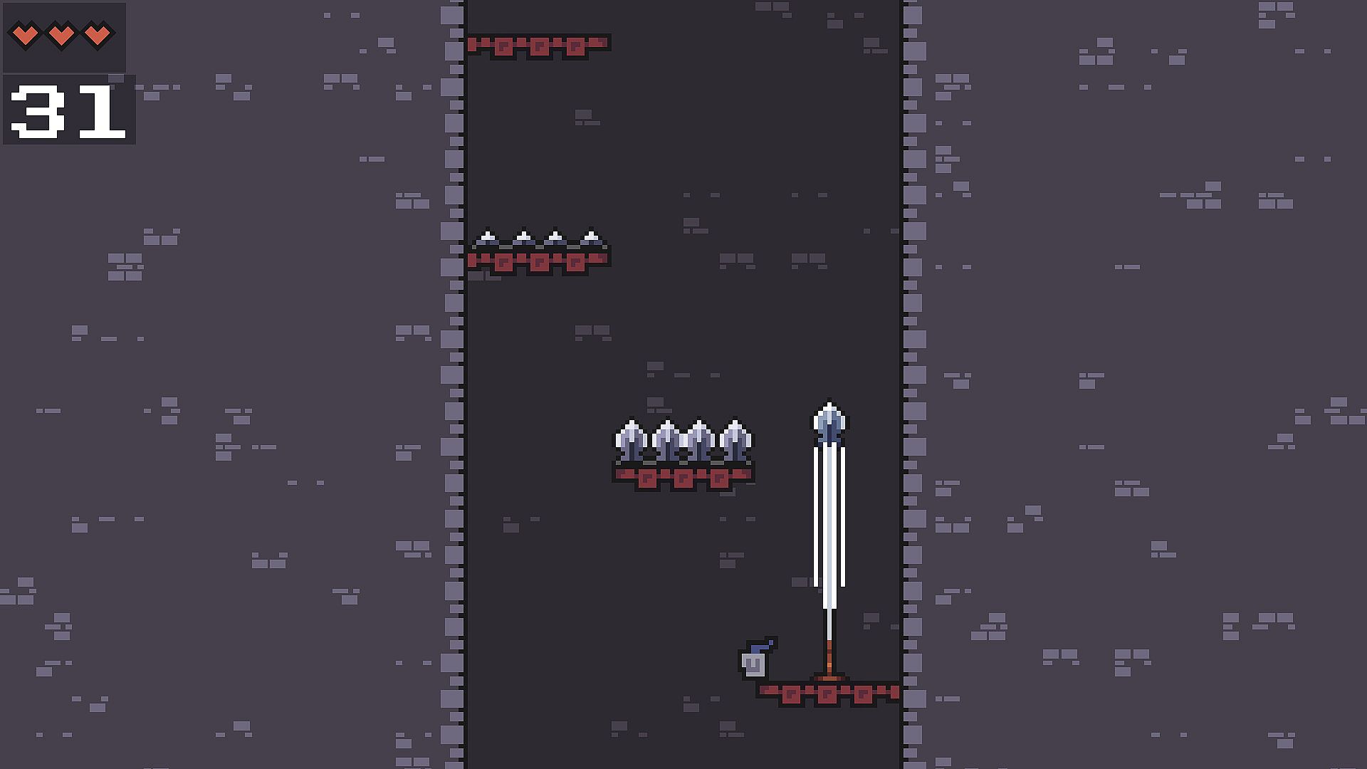 The climb won't be easy. Every step upwards throws something new at you: spikes, saw-blades, narrow gaps, spears. On top of that, if you stand still too long or hesitate, you'll be swallowed by the bottom of the screen.