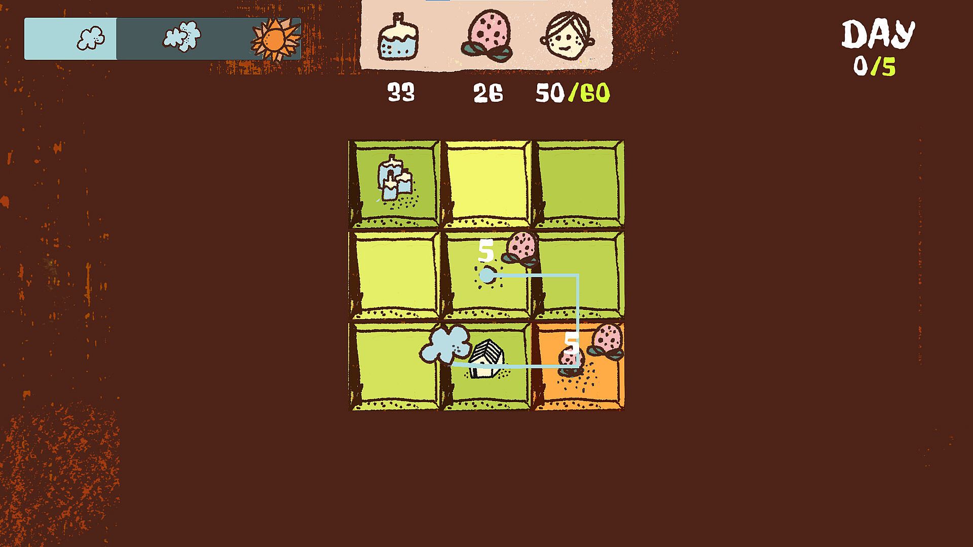 Drag and position clouds, suns, and storms across dynamic grid maps that grow and shift as you play.