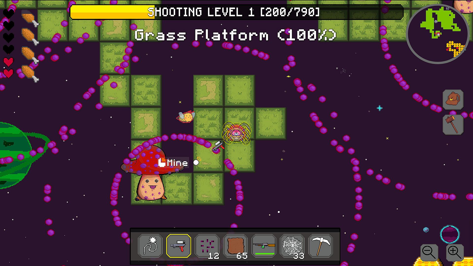 Webcraft's core mechanic is similar to the arcade claw machine game where you have to aim, shoot and hope you successfully grab what you're after. Use your rewards to craft items, build your base and grow a farm to survive.