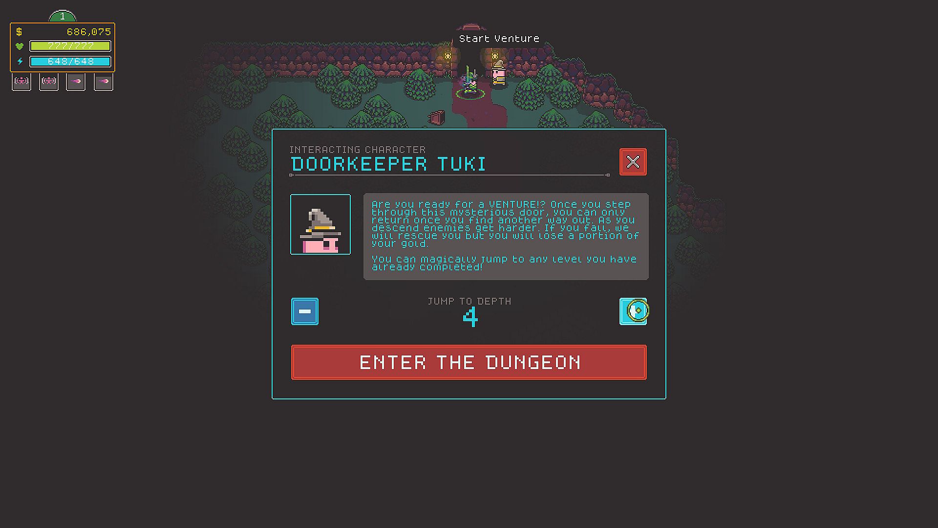 - Four-player local coop - team up with your friends or family to take on the dungeons.