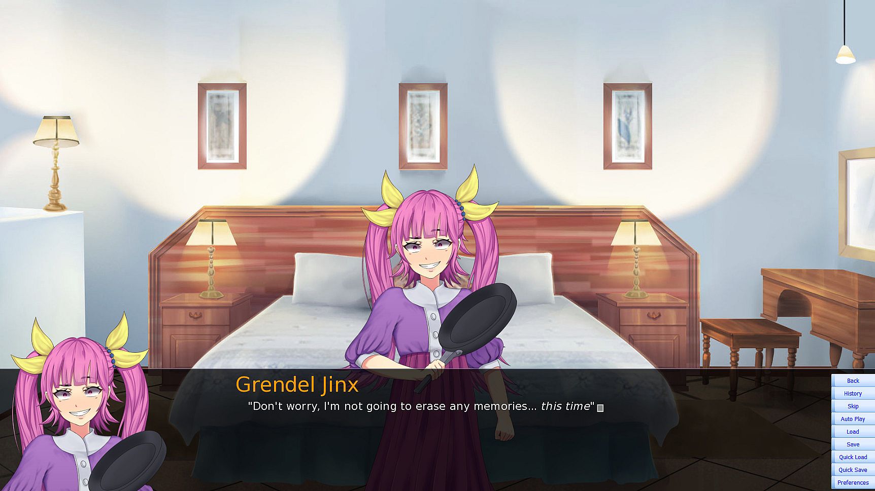 WARNING : DO NOT USE A FRYING PAN AS A WEAPON. GRENDEL IS A TRAINED PROFESSIONAL... ACCORDING TO HER, ANYWAY...