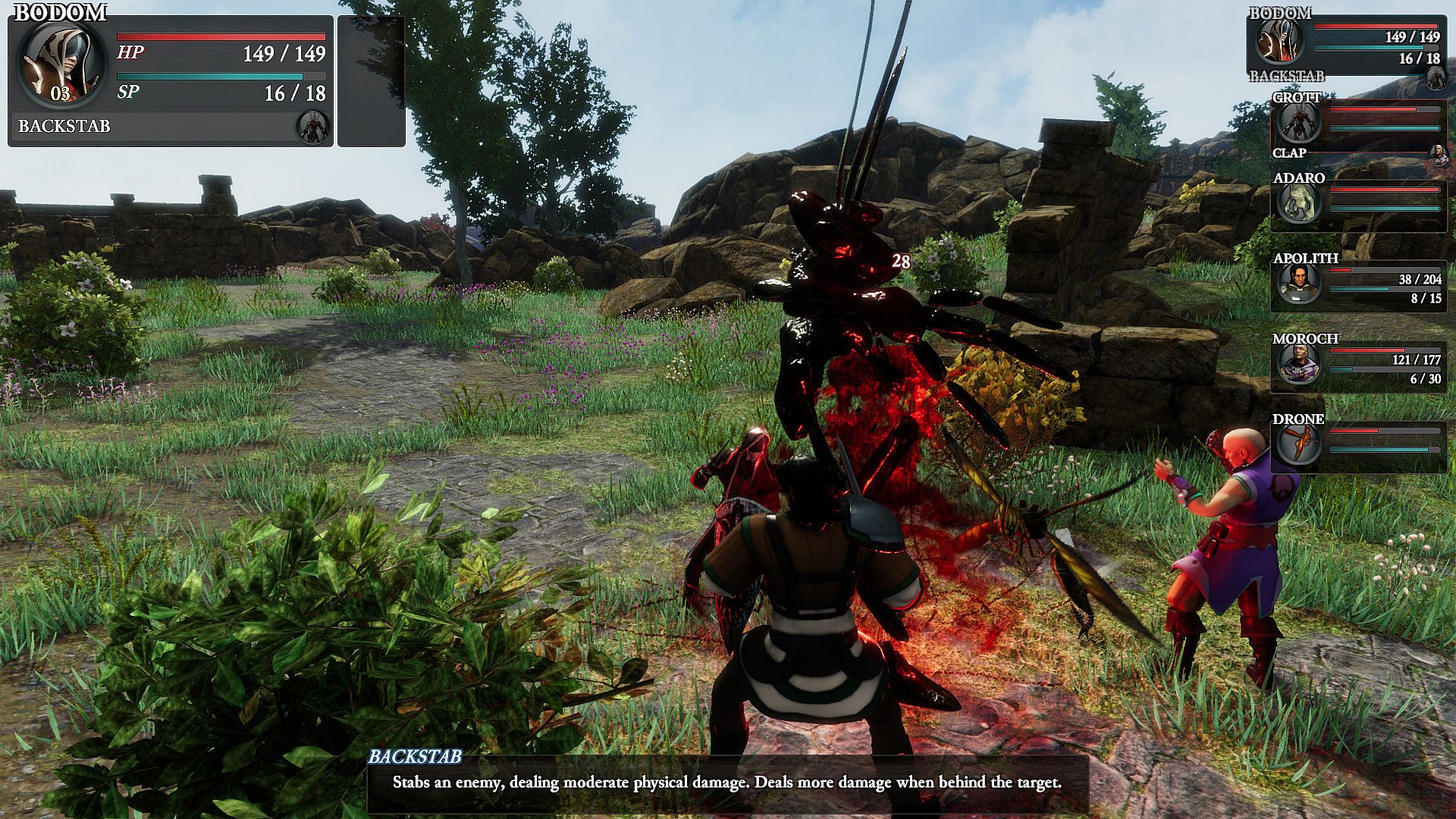 • Play alongside a large cast of interesting characters with defined roles, yet deeply customizable skill sets – allowing multiple builds for each combatant.