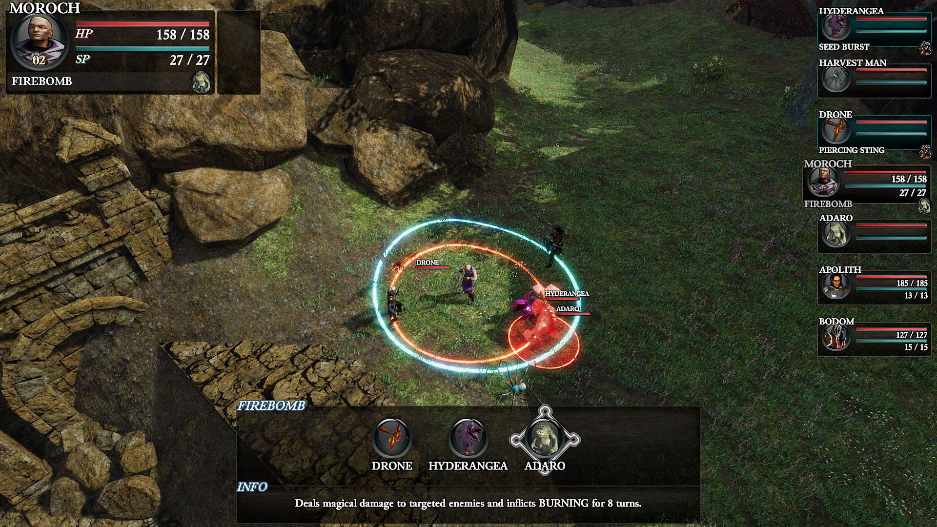 • Fight in a challenging tactical, turn-based combat system where proper positioning and timing are critical.