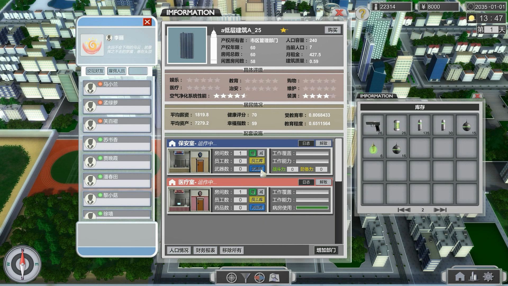 • An organic dynamic city system, evey single building is interactive, you can buy the buildings, then you have the right to manage them, set multiple department to improve the renter`s quality of life and attract more renters.